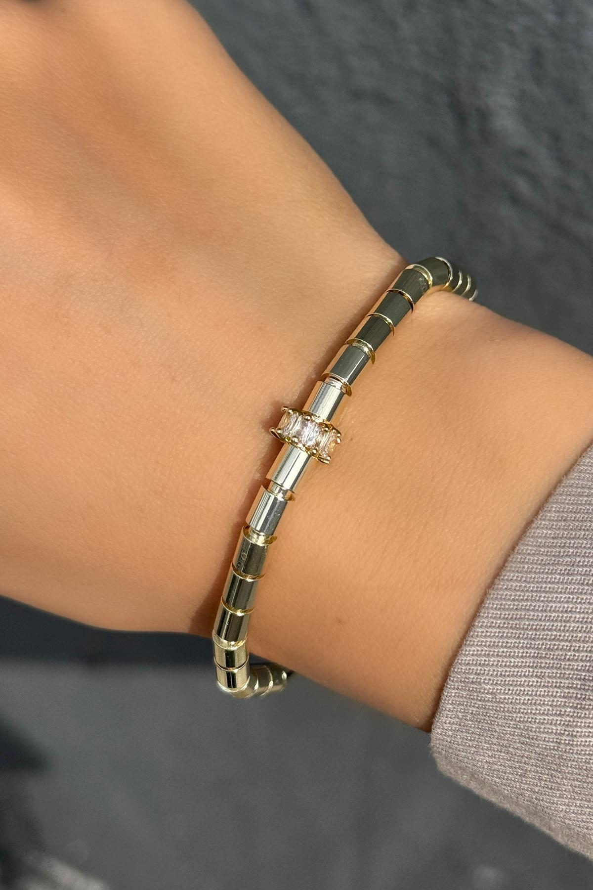 Altın Renk Taş Detaylı 14K Altın Kaplama Bileklik
