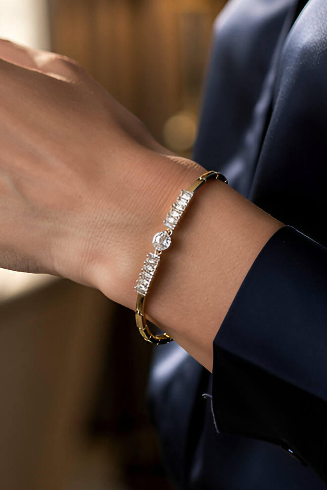 Altın Renk Taş Detaylı 14K Altın Kaplama CM Zincir Bileklik