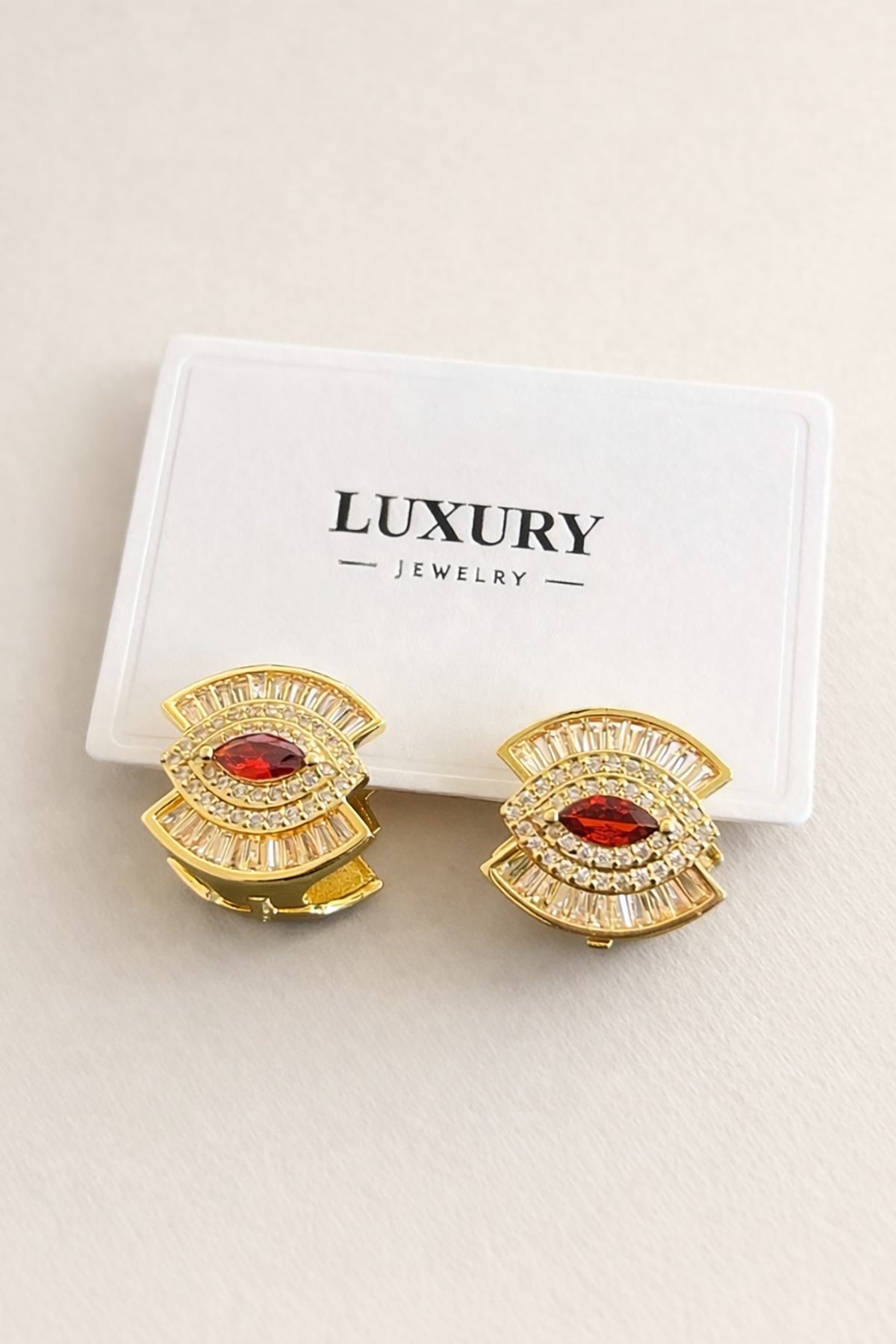 Altın Renk Taş Detaylı 14k Altın Kaplama Küpe (Çift)