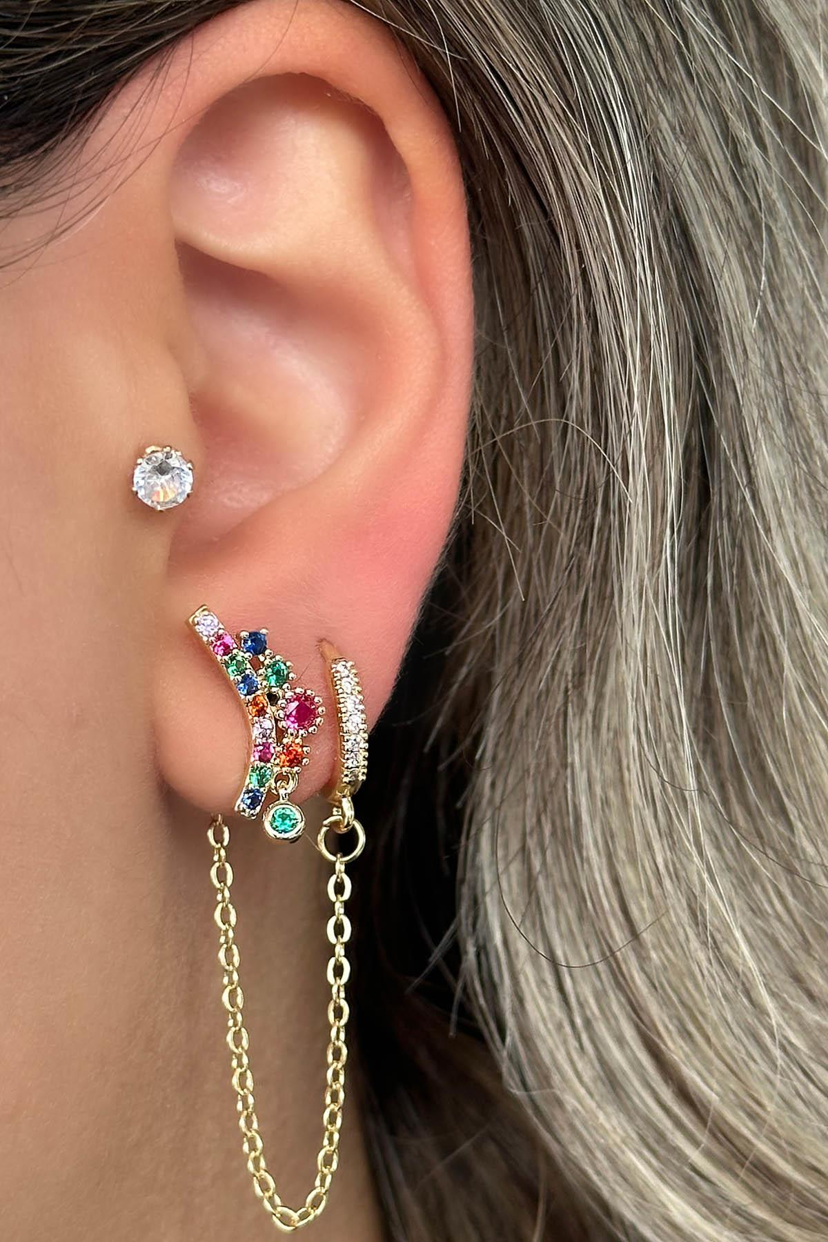 Altın Renk Taş Detaylı 3'lü Küpe Set