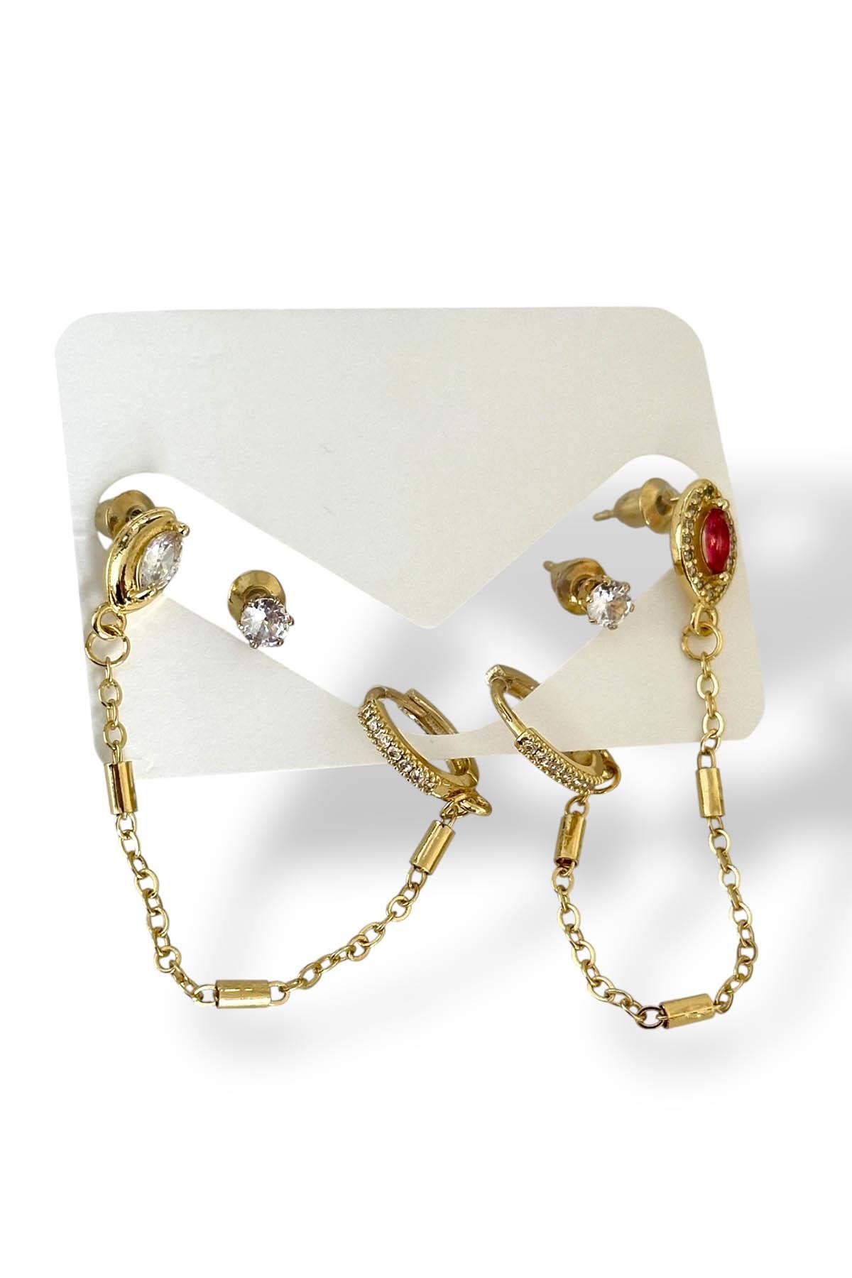 Altın Renk Taş Detaylı 6'lı Küpe Set