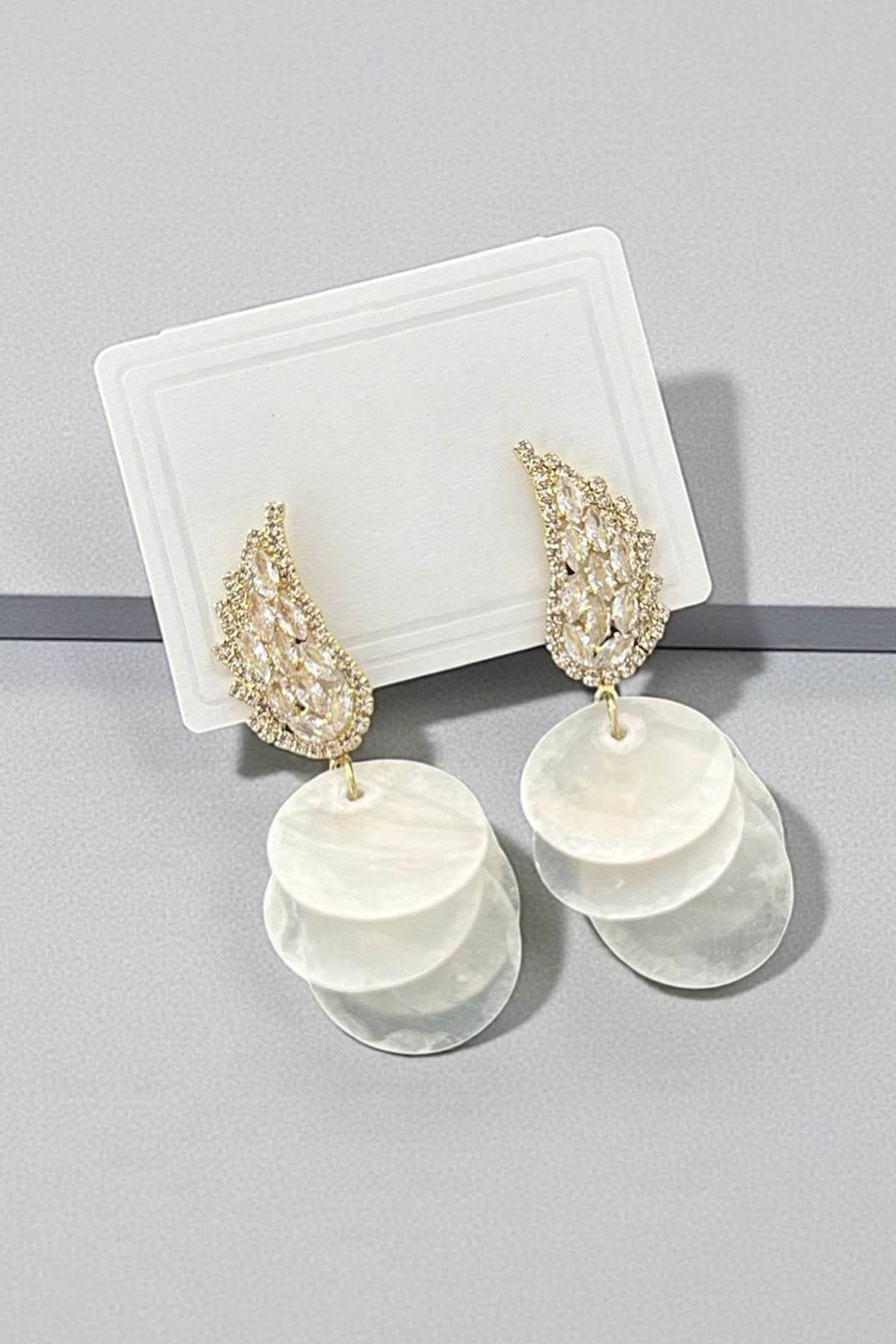 Altın Renk Taş Detaylı Abiye Küpe (Çift)