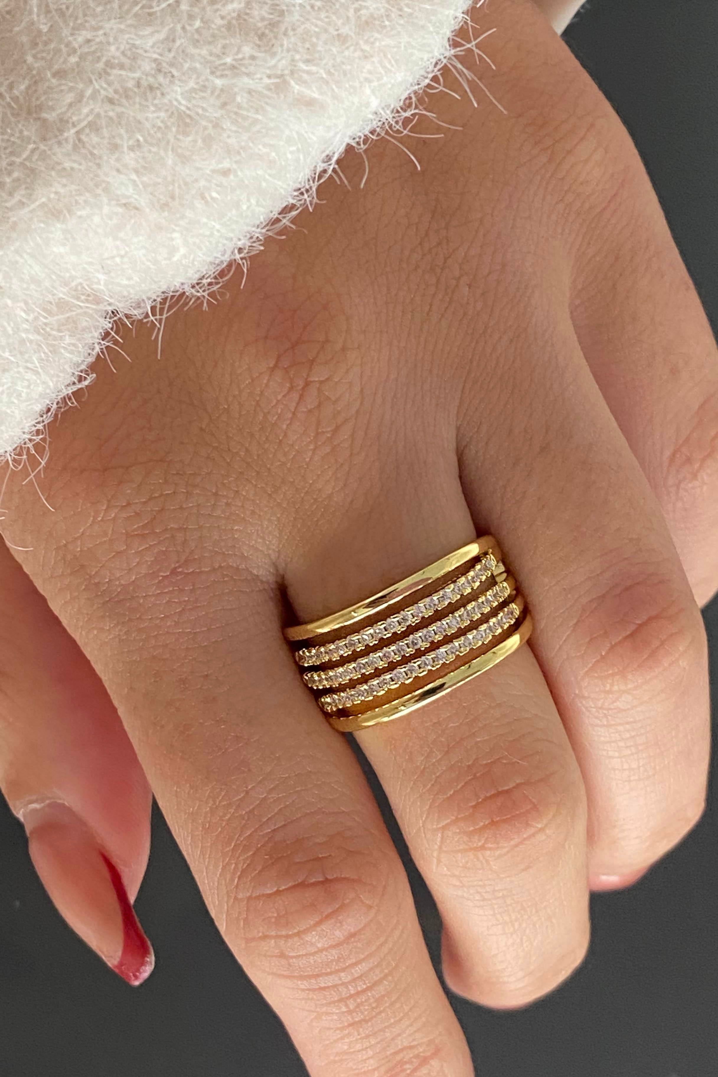 Altın Renk Taş Detaylı Ayarlanabilir Çelik Yüzük