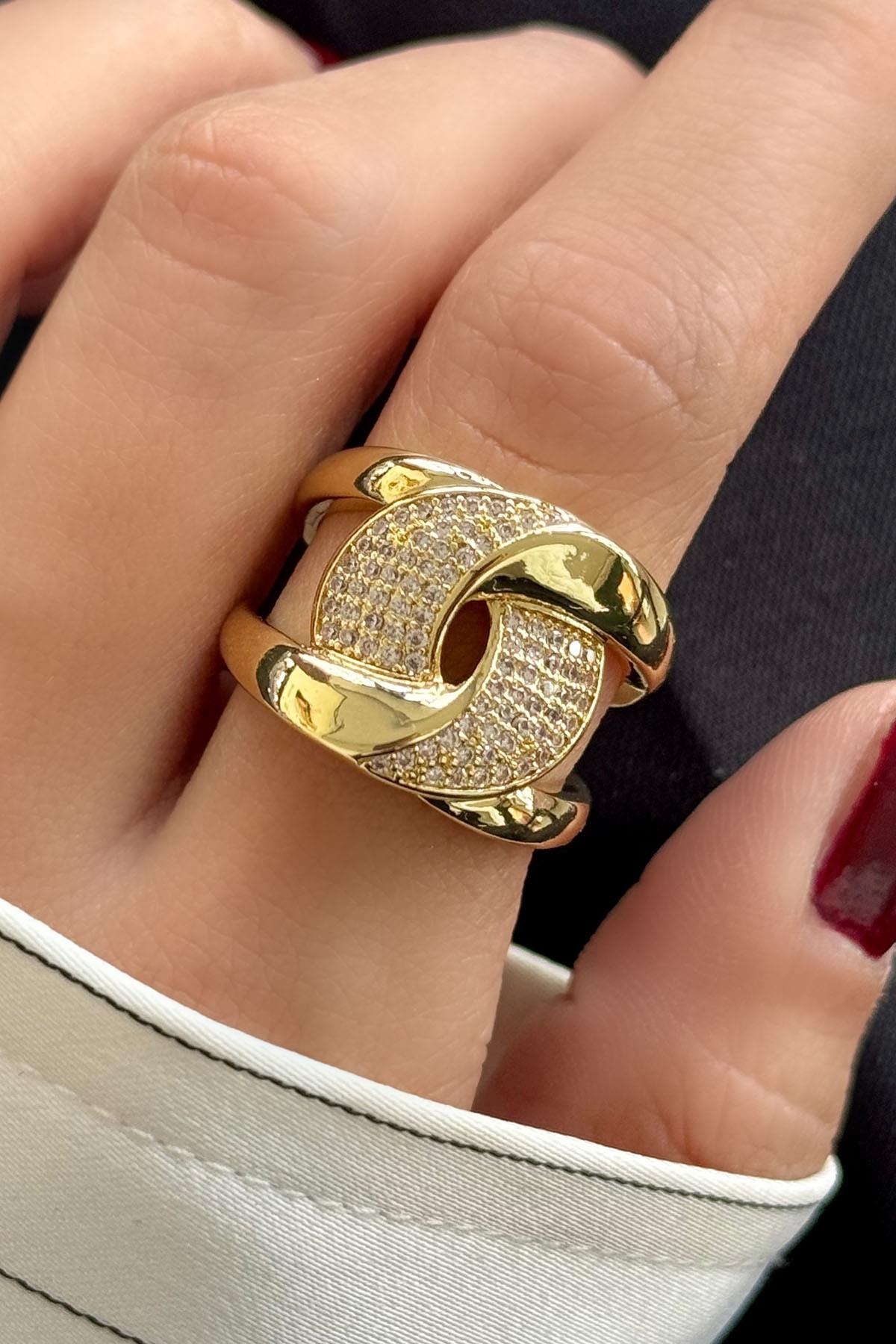 Altın Renk Taş Detaylı Ayarlanabilir Çelik Yüzük