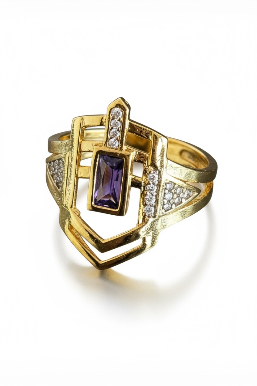 Altın Renk Taş Detaylı Ayarlanabilir Yüzük