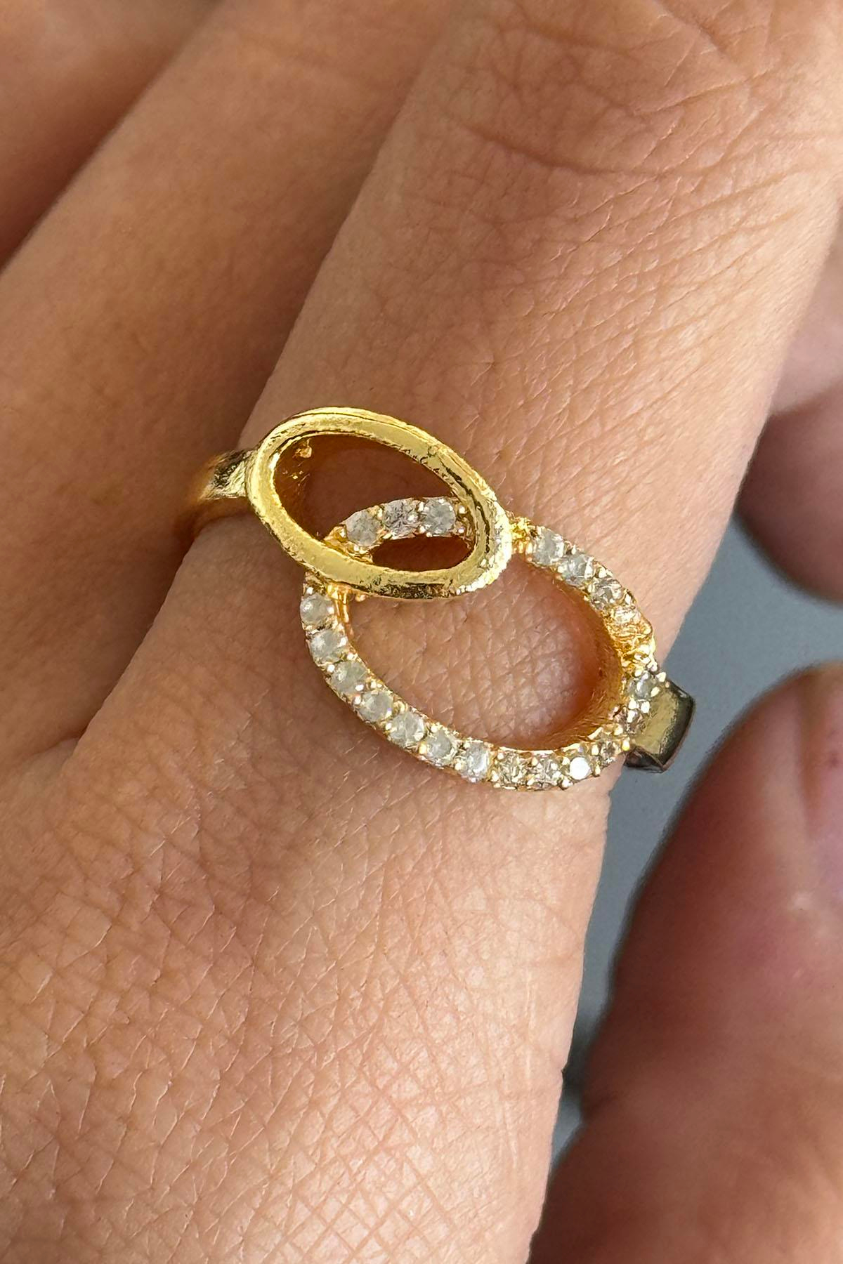Altın Renk Taş Detaylı Ayarlanabilir Yüzük