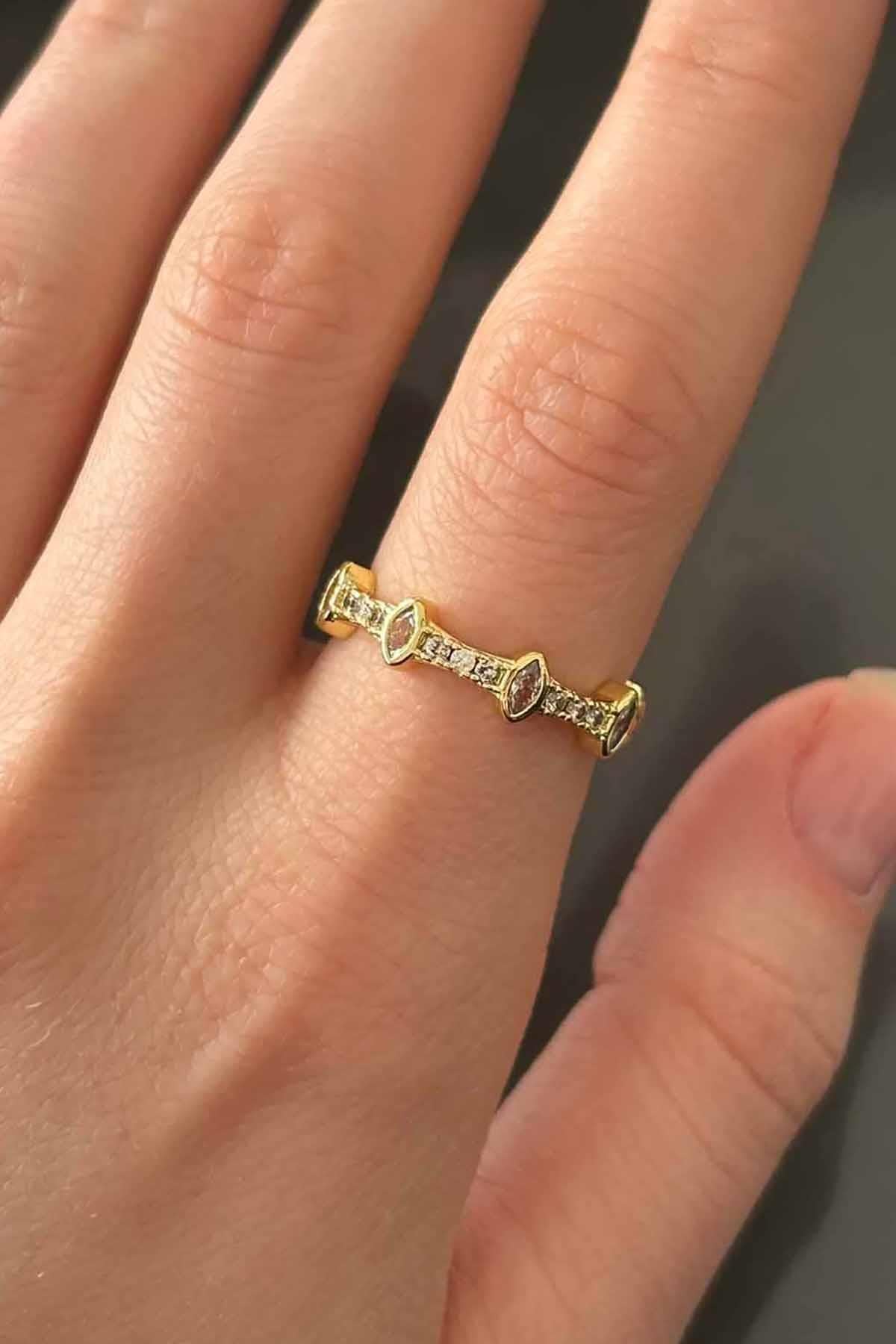 Altın Renk Taş Detaylı Ayarlanabilir  Yüzük