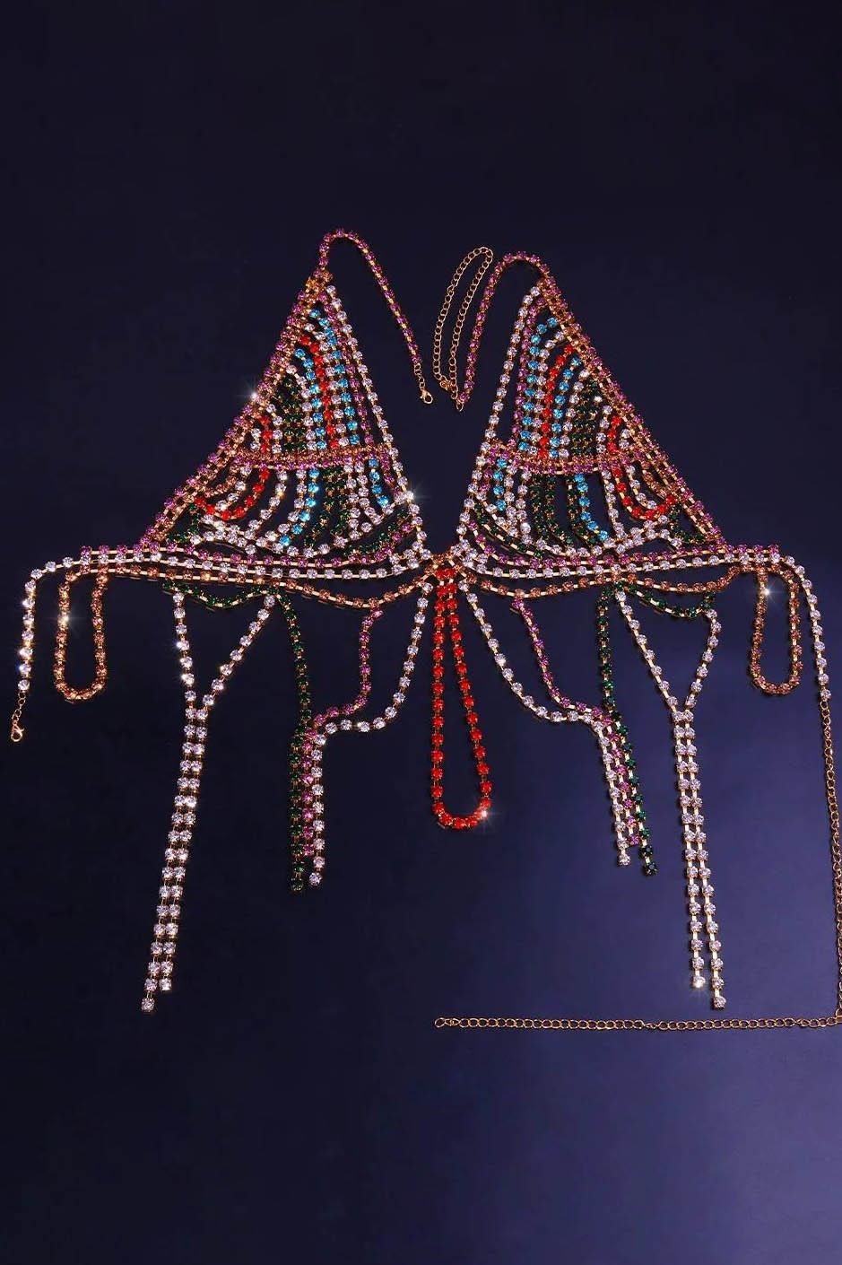 Altın Renk Taş Detaylı Bikini Üstü /Bralet /Vücut Aksesuarı