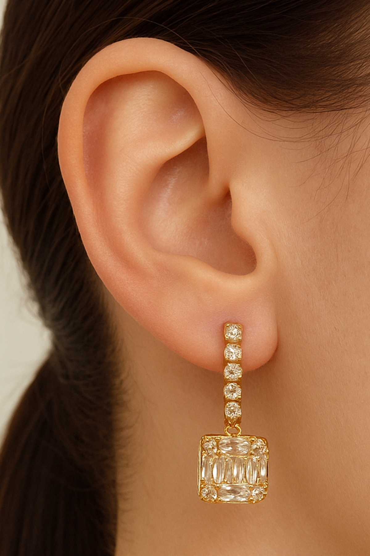 - Zarif tasarımıyla dikkat çeken bu çift küpe, altın rengi detaylarıyla göz alıcı bir görünüm sunar.