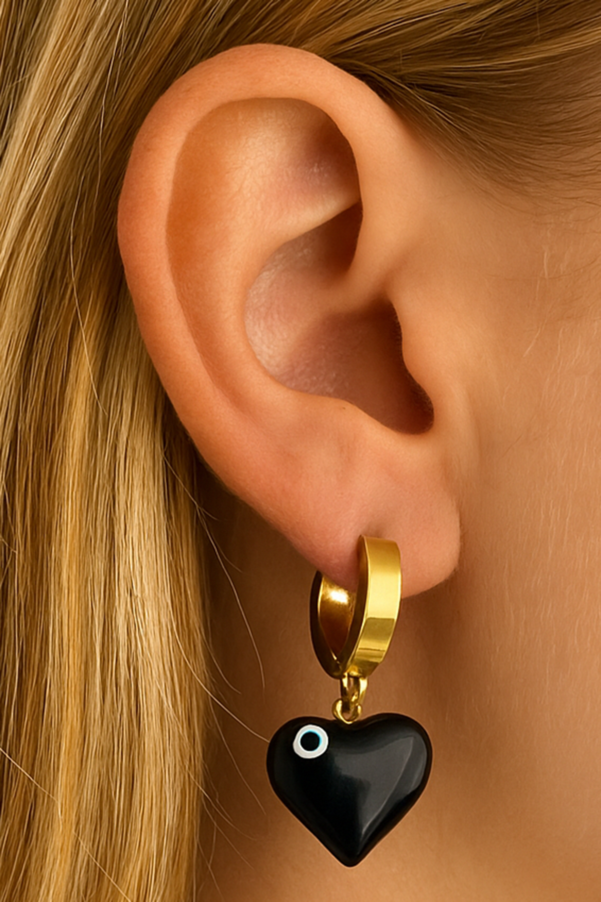 Altın Renk Kalp Figürlü Çelik Küpe (Çift)