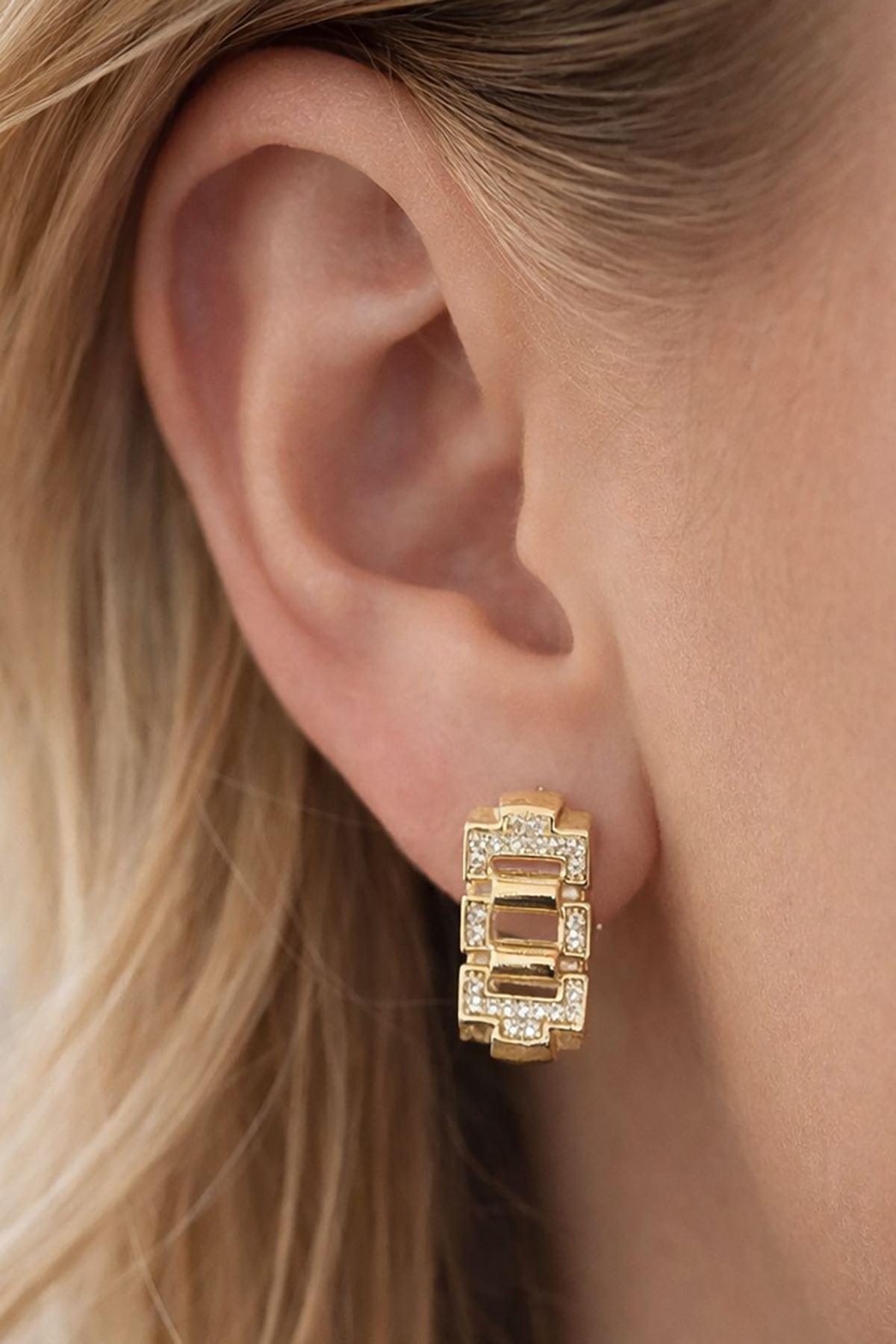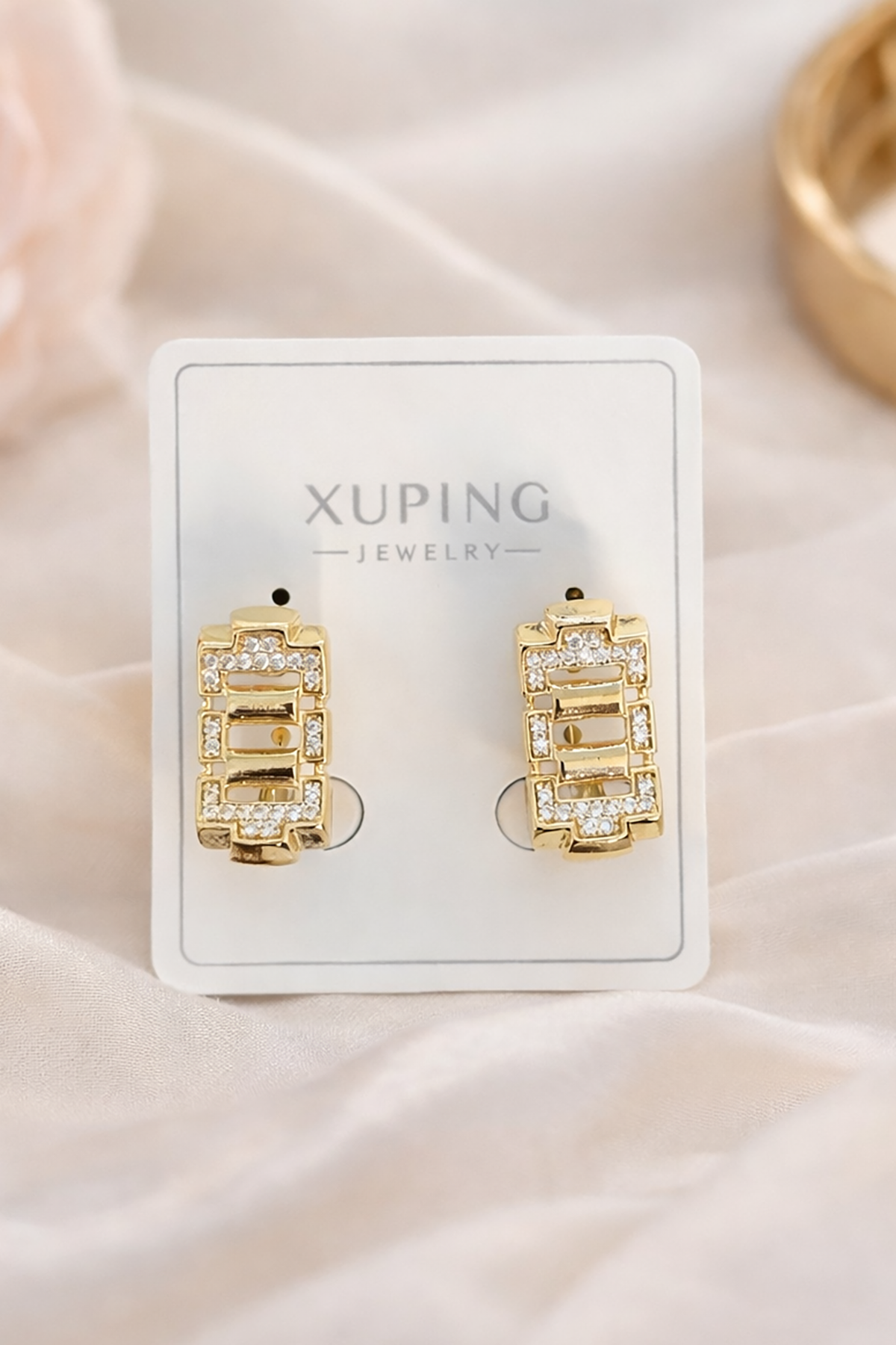 Altın Renk Taş Detaylı Çelik Xupıng Küpe (Çift)