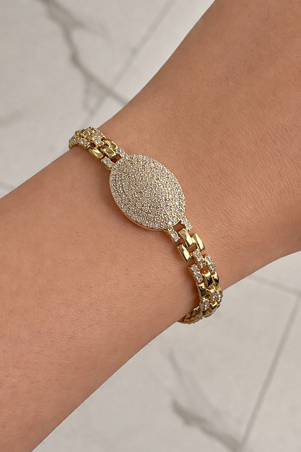 Altın Renk Taş Detaylı Çelik Xupıng VİP Bileklik