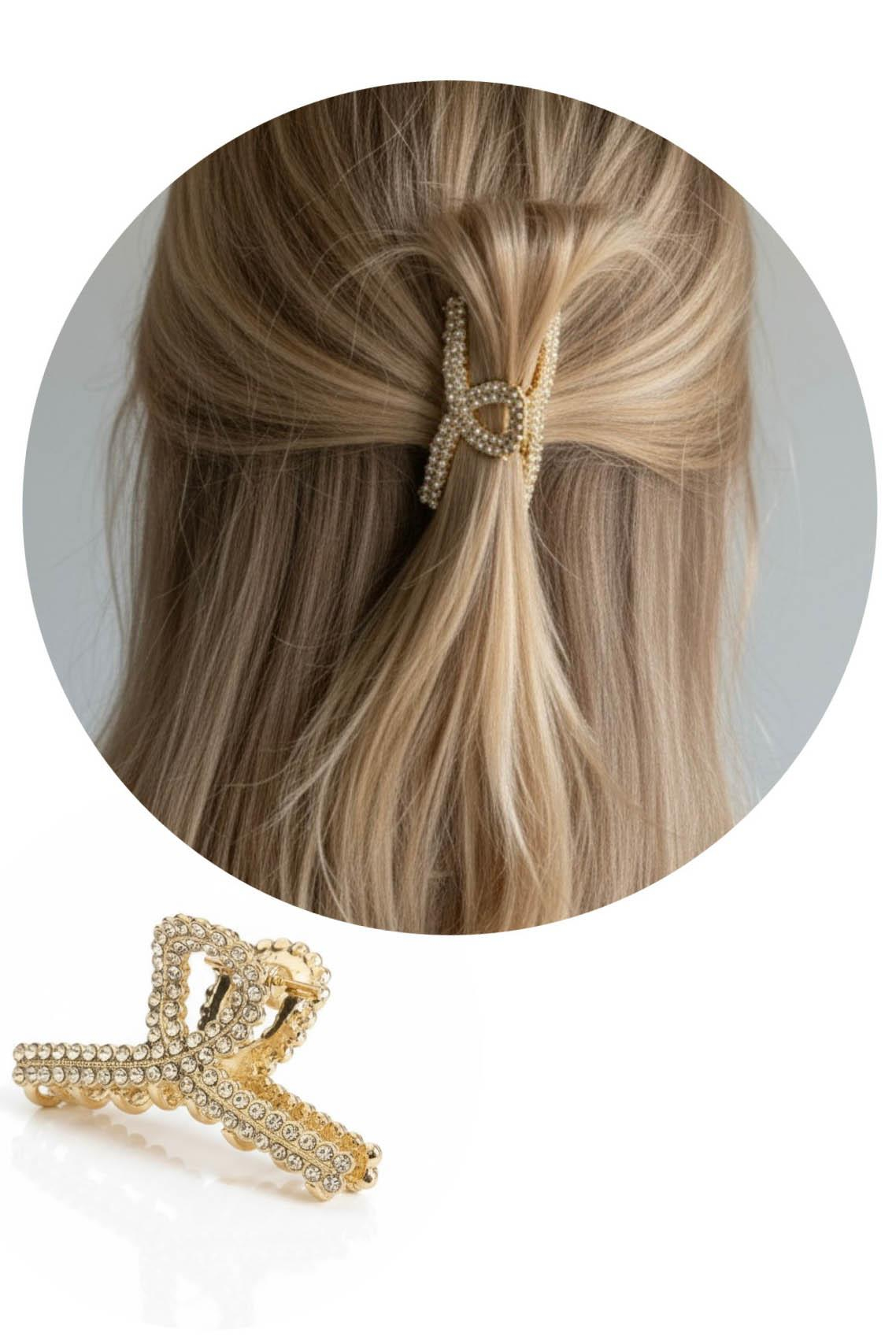 Altın Renk Taş Detaylı Mini Metal Mandal Toka