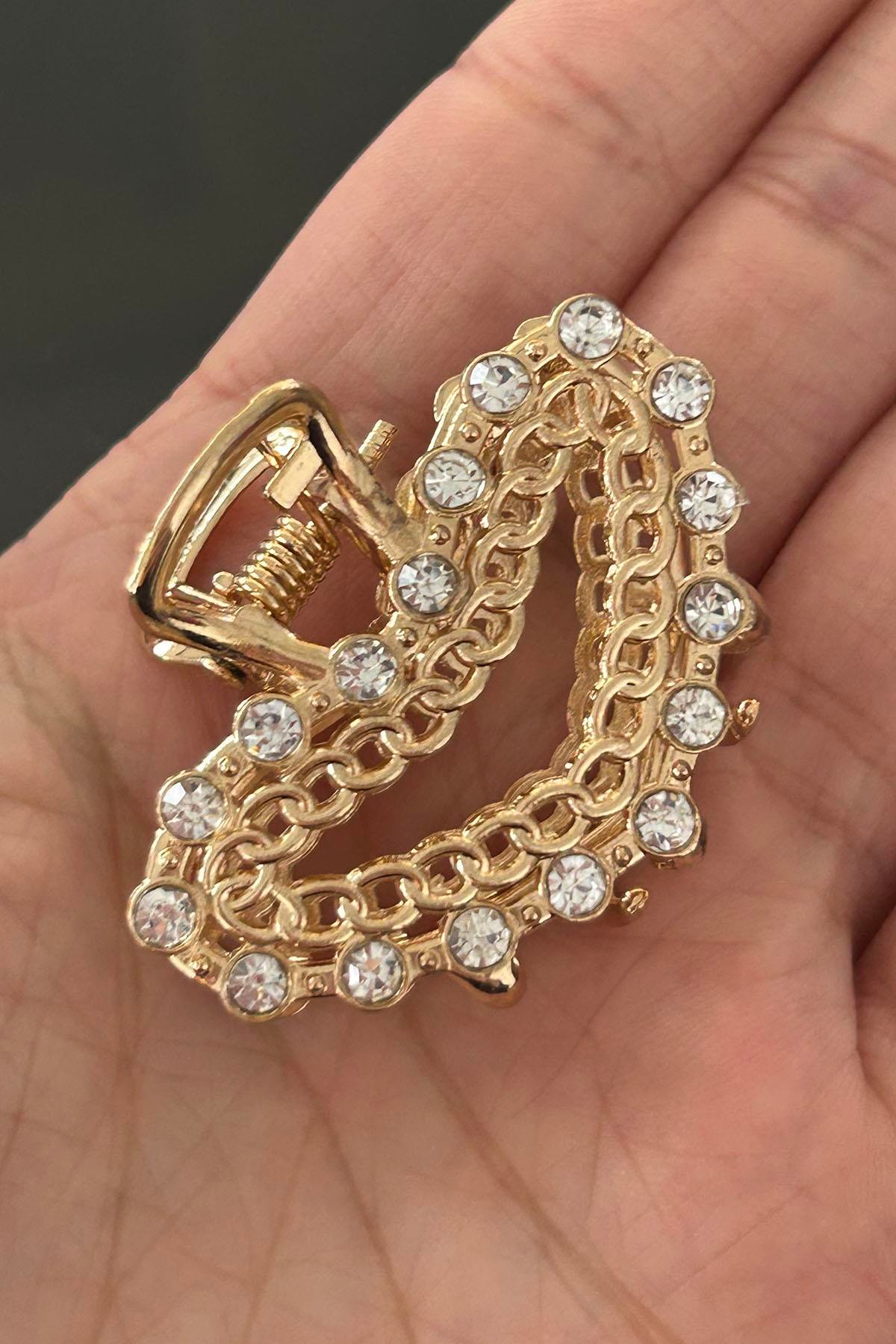 Altın Renk Taş Detaylı Mini Metal Mandal Toka