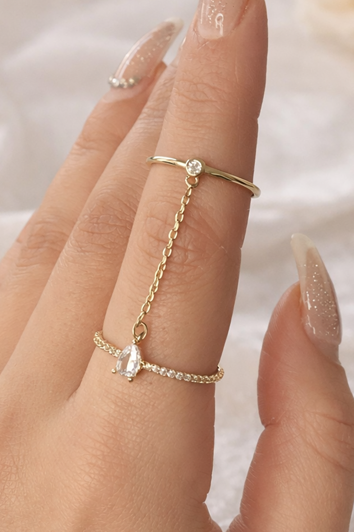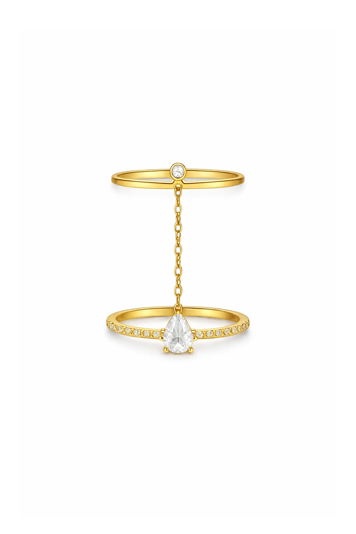 Altın Renk Taş Detaylı Sallantılı İkili Ayarlanabilir Yüzük