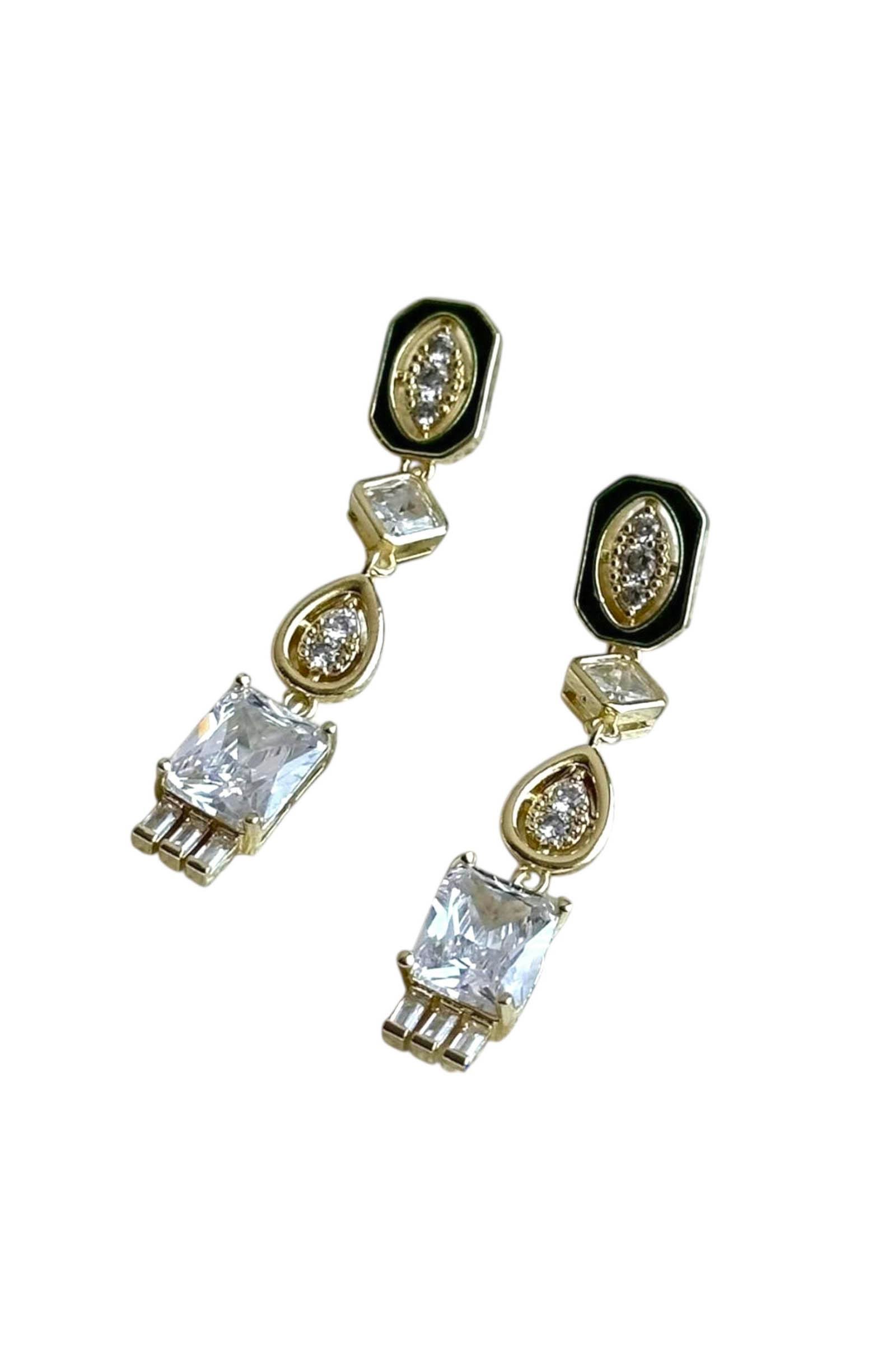 Altın Renk Taş Detaylı Tasarım Küpe (Çift)