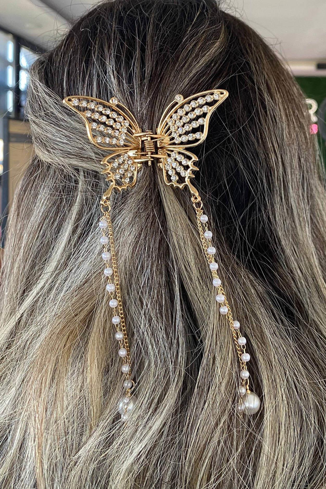Altın Renk Taş Ve İnci Detaylı Metal Mandal Toka
