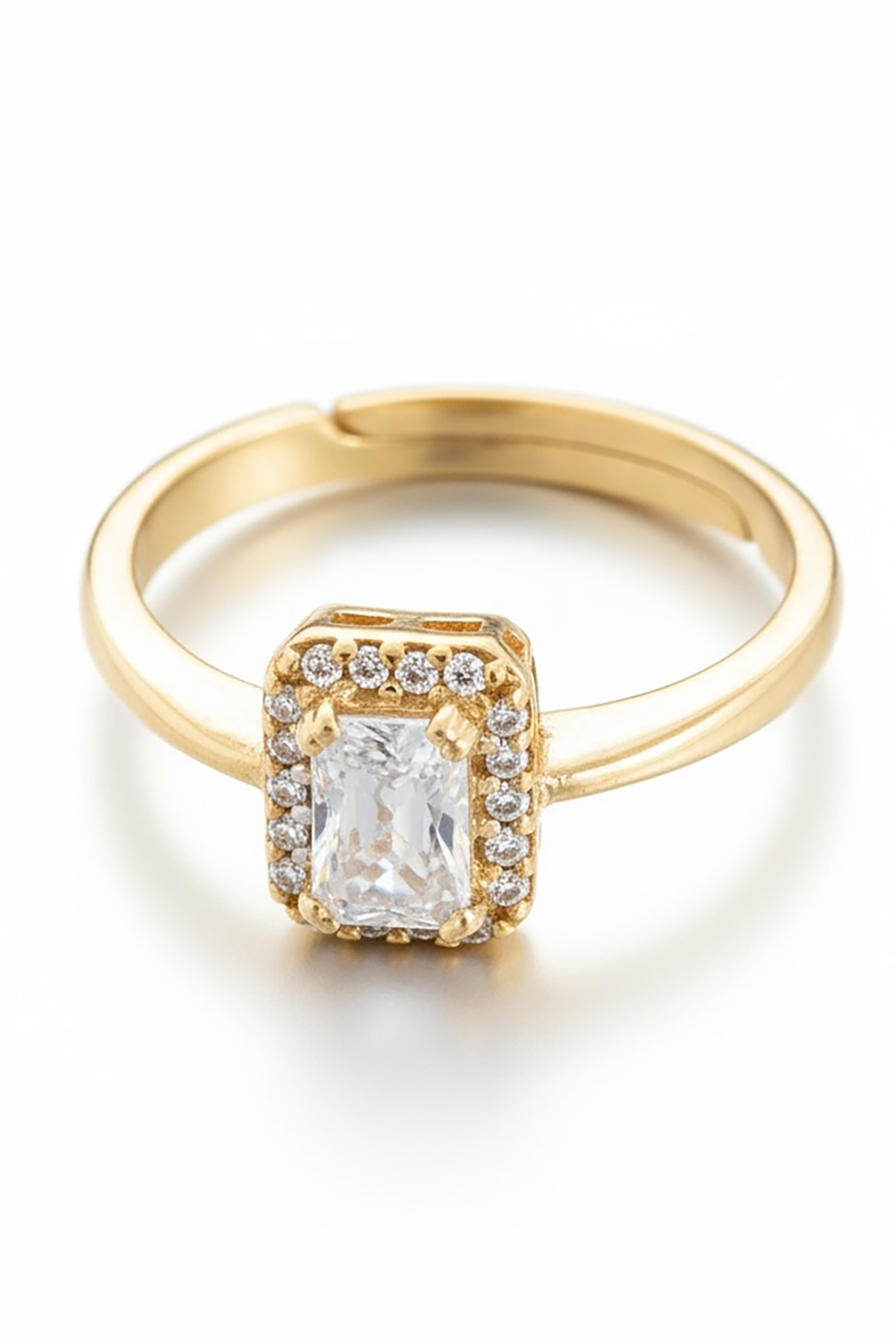 Altın Renk Tek Taş Detaylı Ayarlanabilir Baget Yüzük