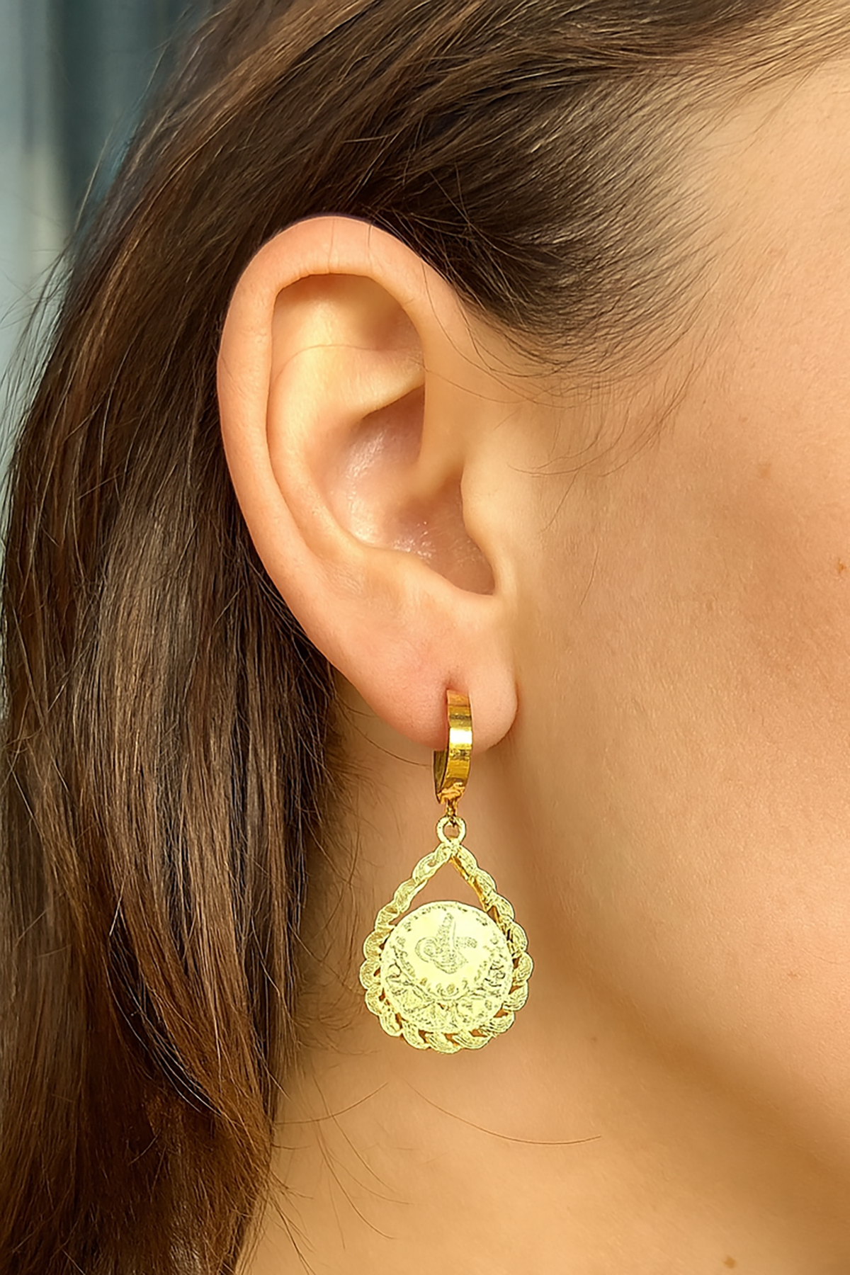 Altın Renk Tuğra Figürlü Çelik Küpe (Çift)
