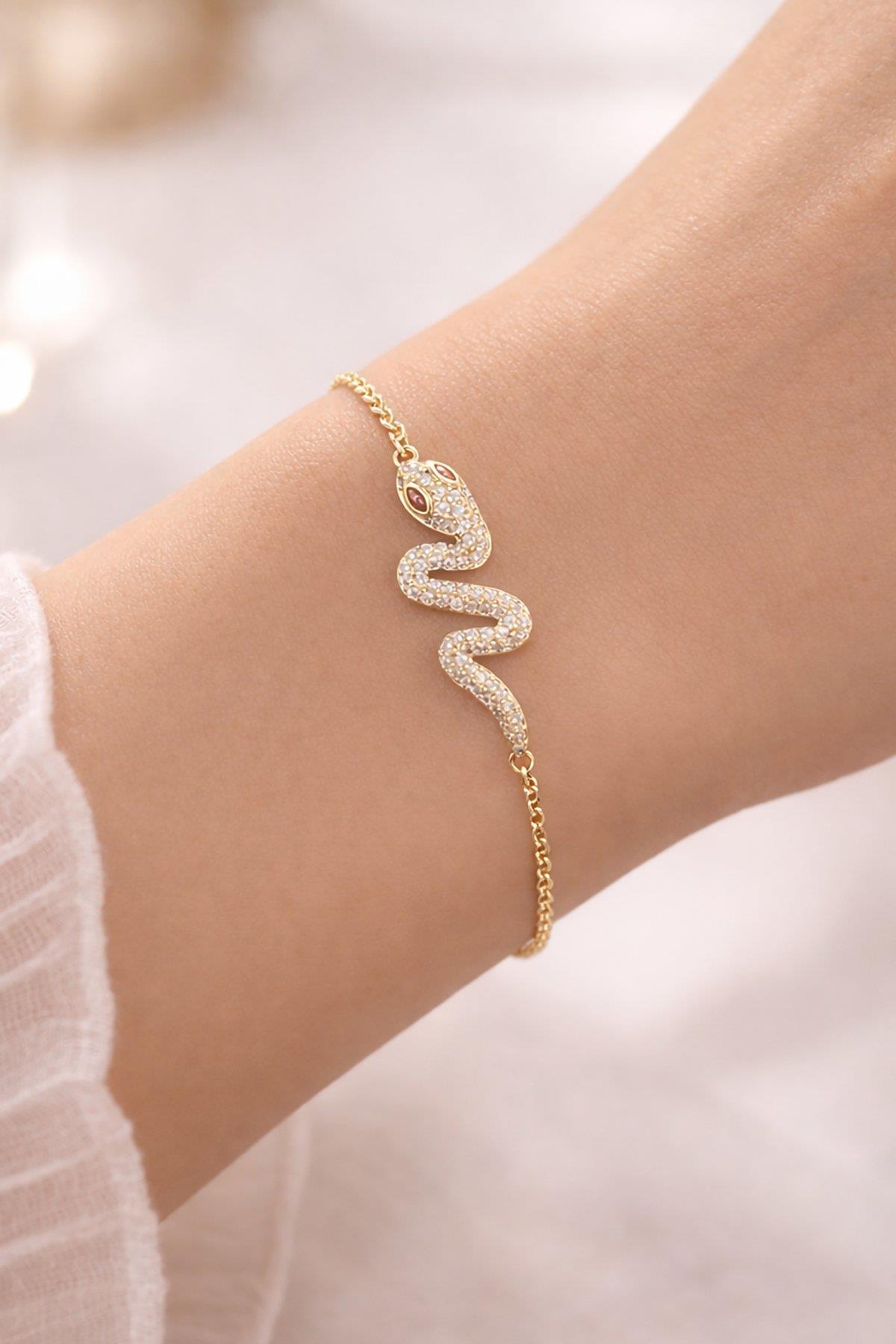 Altın Renk Yılan Figürlü Çelik Xupıng VİP Bileklik