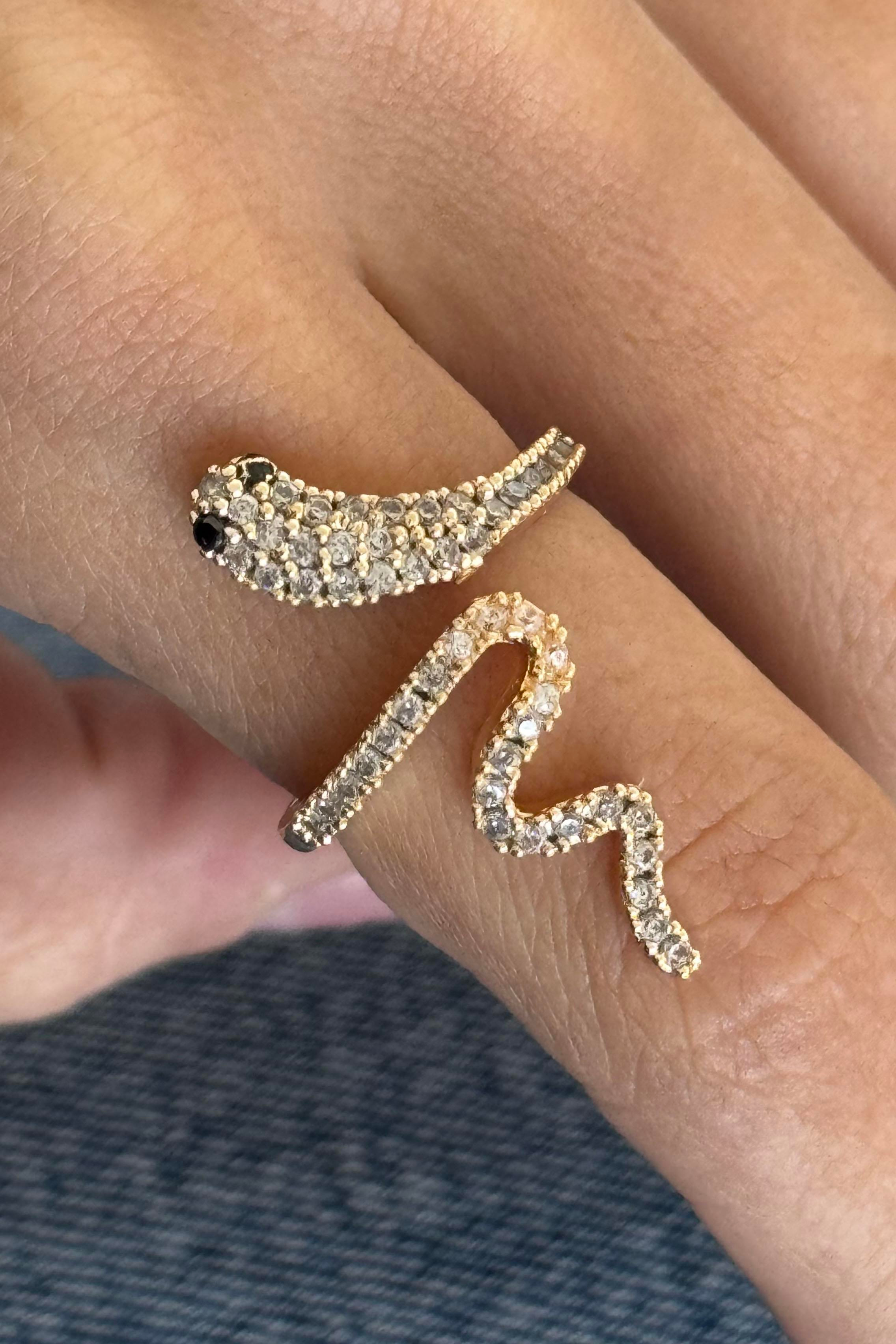 Altın Renk Yılan Figürlü Taş Detaylı Ayarlanabilir Yüzük