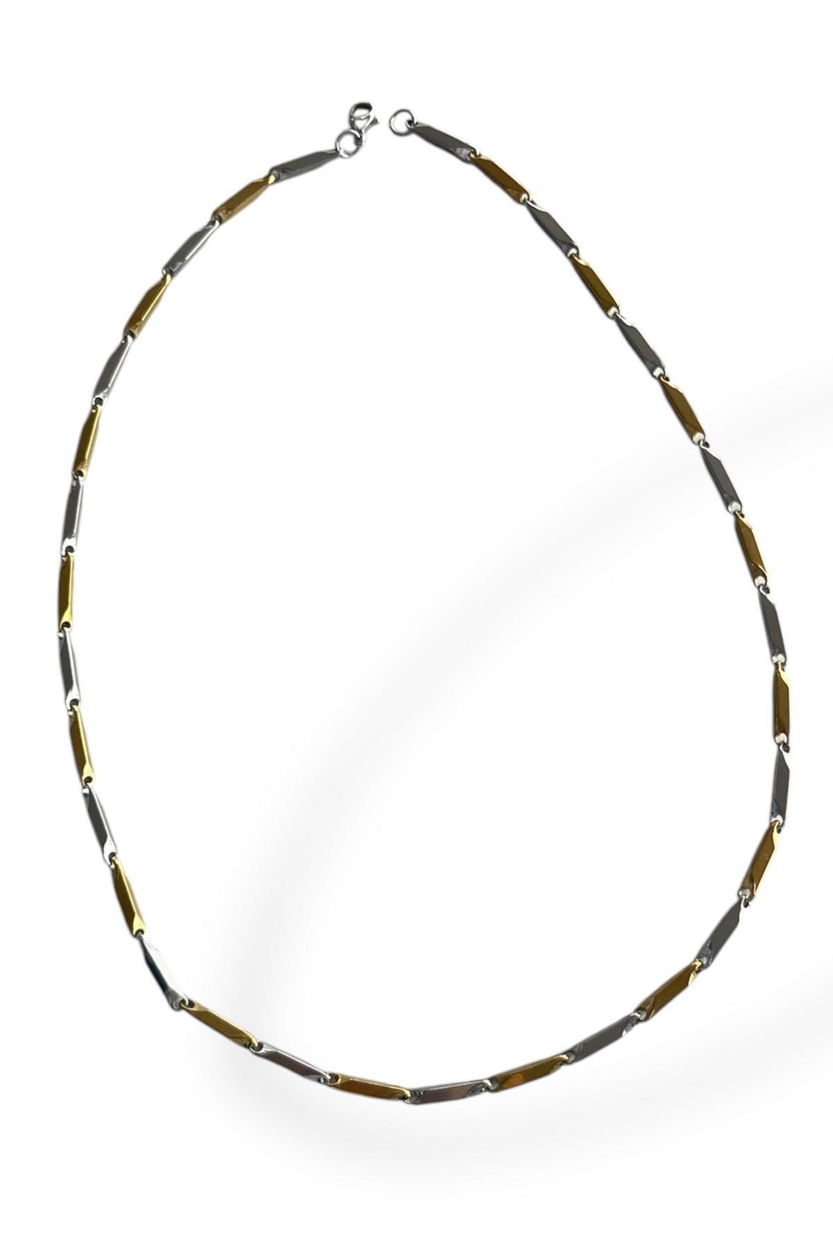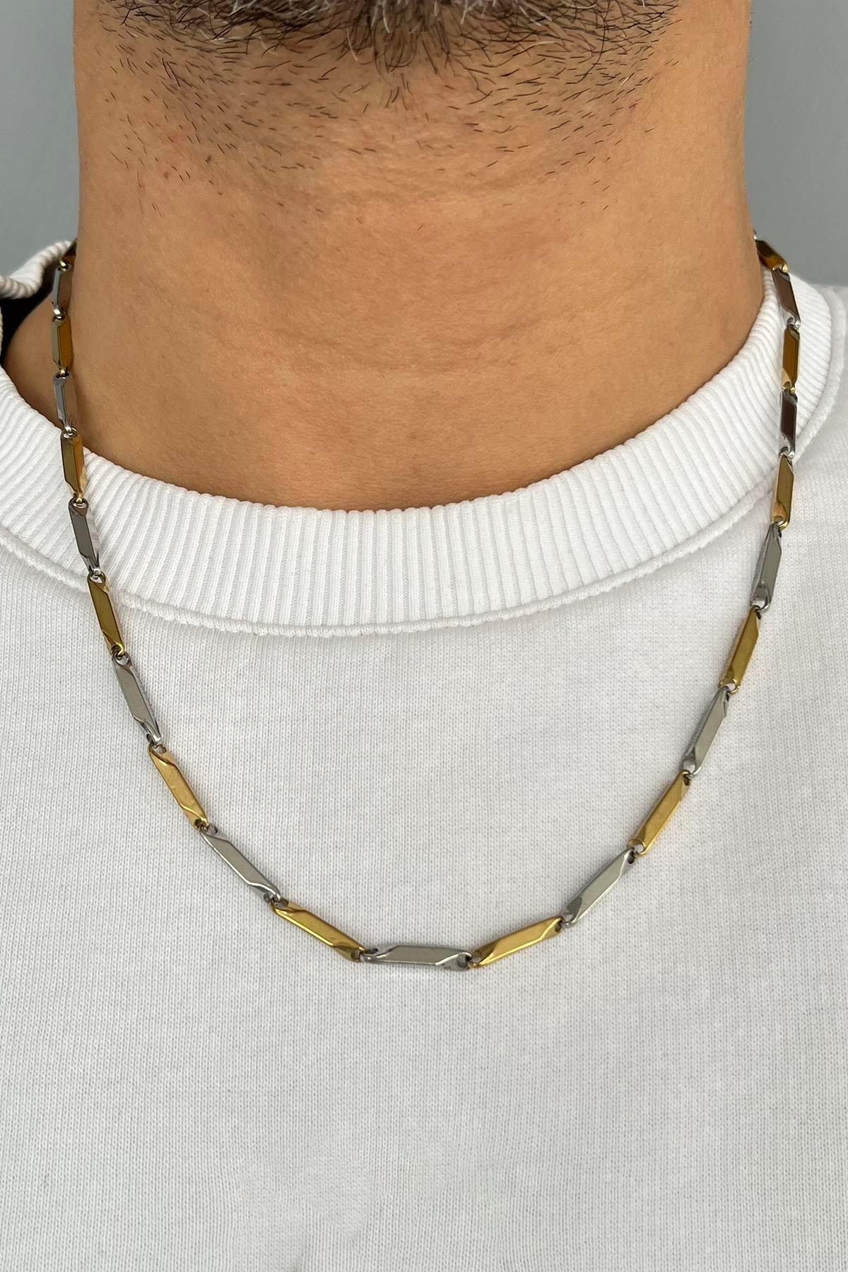 Altın Ve Gümüş Renk Erkek Zincir Çelik Kolye (55cm)