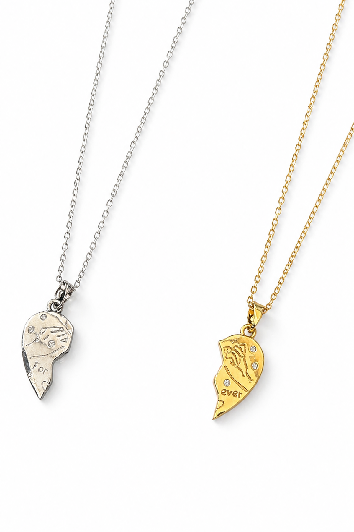Altın Ve Gümüş Renk Kalp Figürlü Mıknatıslı Çelik Arkadaşlık Kolyesi
