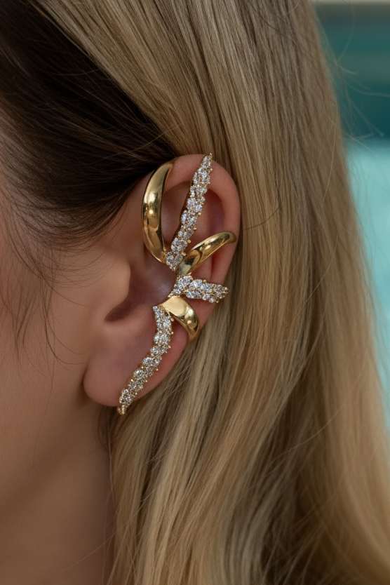 Altın Ve Gümüş Renk Taş Detaylı Kulak Aksesuarı