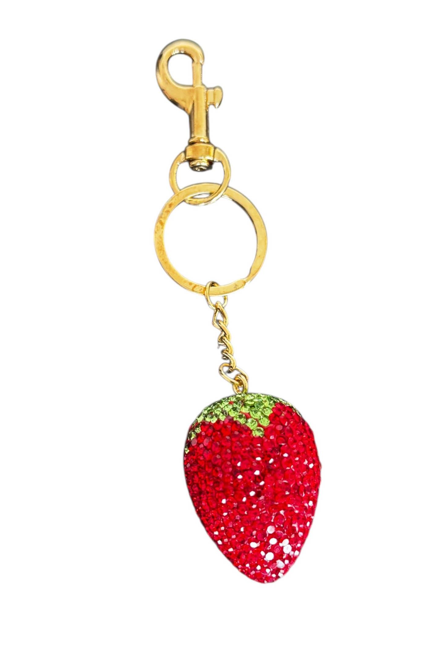 Altın Ve Kırmızı Renk Çilek Figürlü Taş Detaylı Çanta Charm/ Anahtarlık