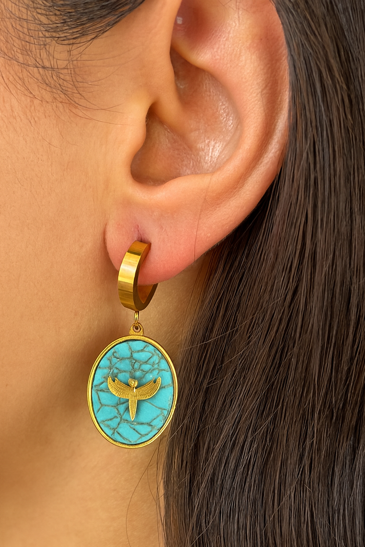 - Zarif tasarımıyla dikkat çeken bu çift küpe, altın rengi detaylarıyla göz alıcı bir görünüm sunar.
