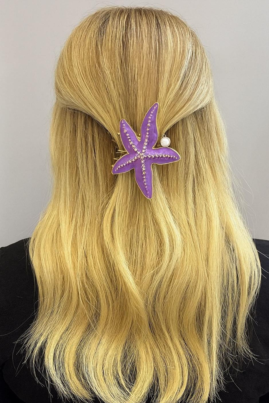 Altın Ve Mor Renk Deniz Yıldızı Figürlü Taşlı Metal Mandal Toka