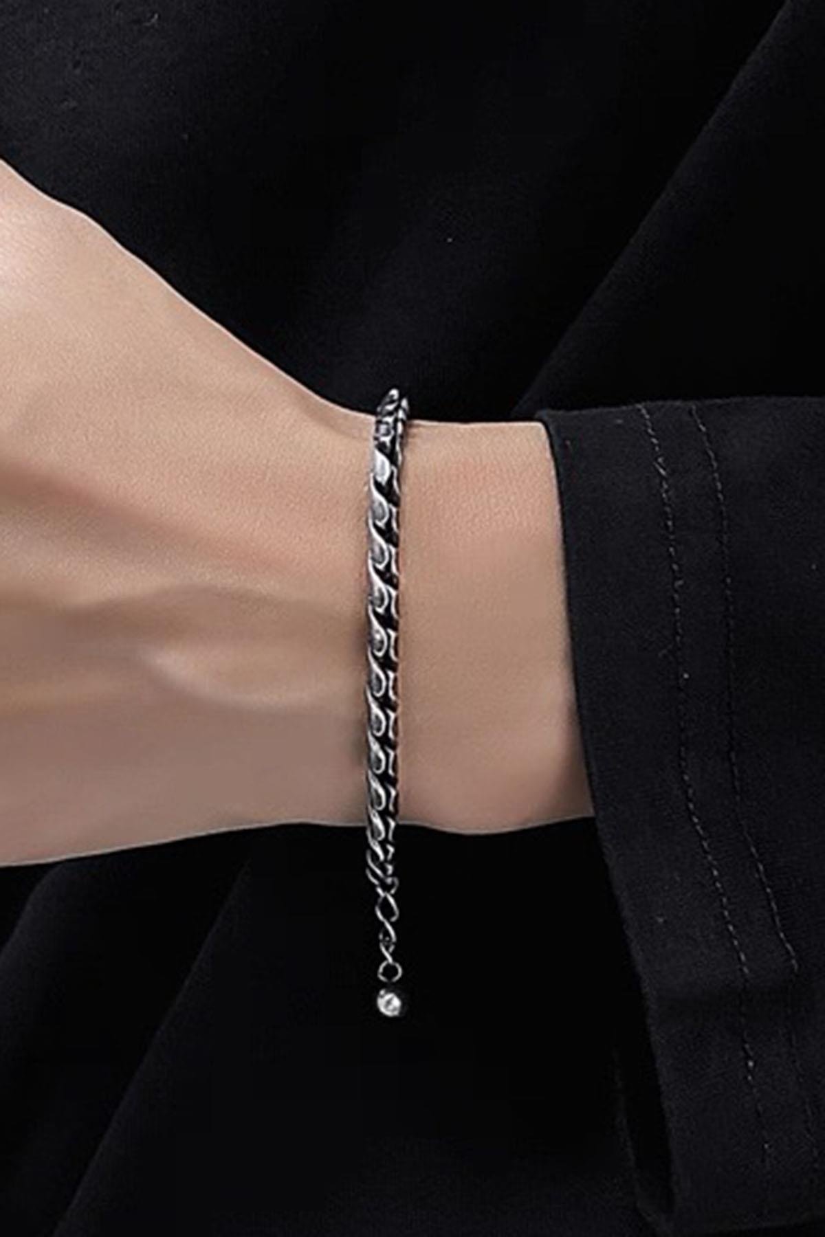 Antrasit Renk Zincir Detaylı Çelik Erkek Bileklik