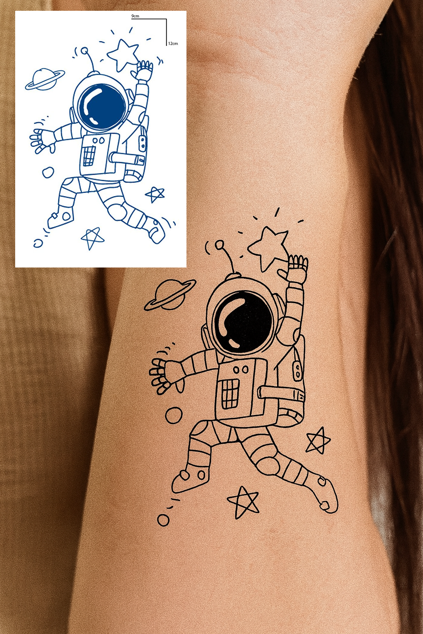 Astronot Figürlü 12 Saat Sonra Kararan Geçici Dövme Tattoo