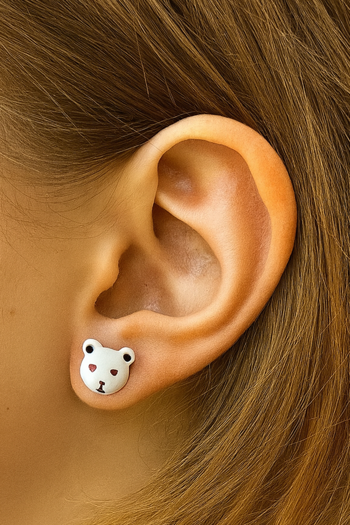 Beyaz Renk Ayıcık Figürlü Çocuk Küpe (Çift)