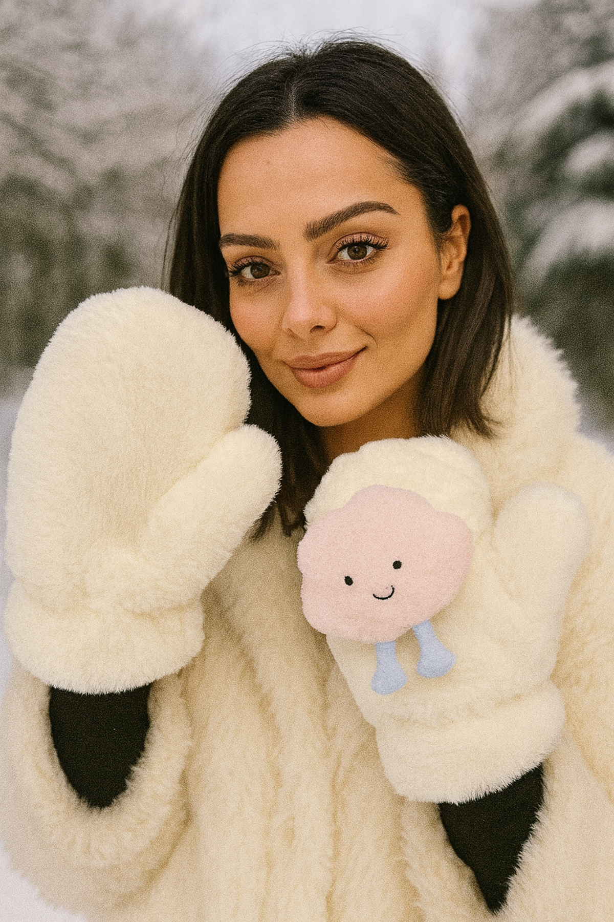 Beyaz Renk Bulut Figürlü Askılı Peluş Eldiven