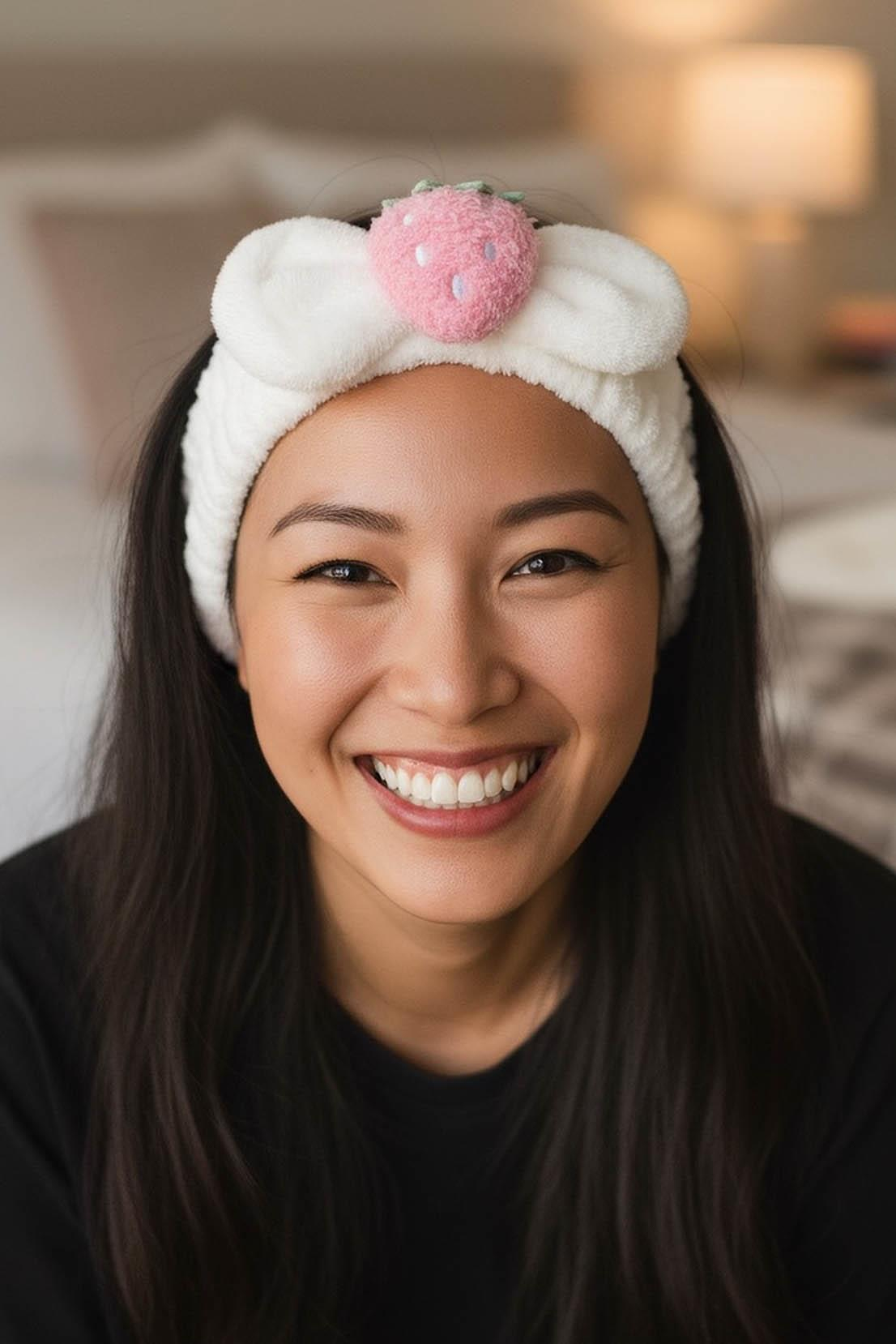Beyaz Renk Çilek Figürlü Peluş Saç Bandı