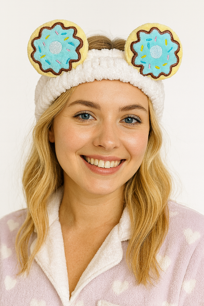 Beyaz Renk Donut Figürlü Peluş Saç Bandı
