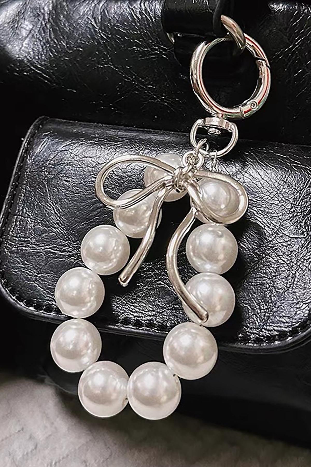 Beyaz Renk İnci Detaylı Çanta Charm/ Anahtarlık