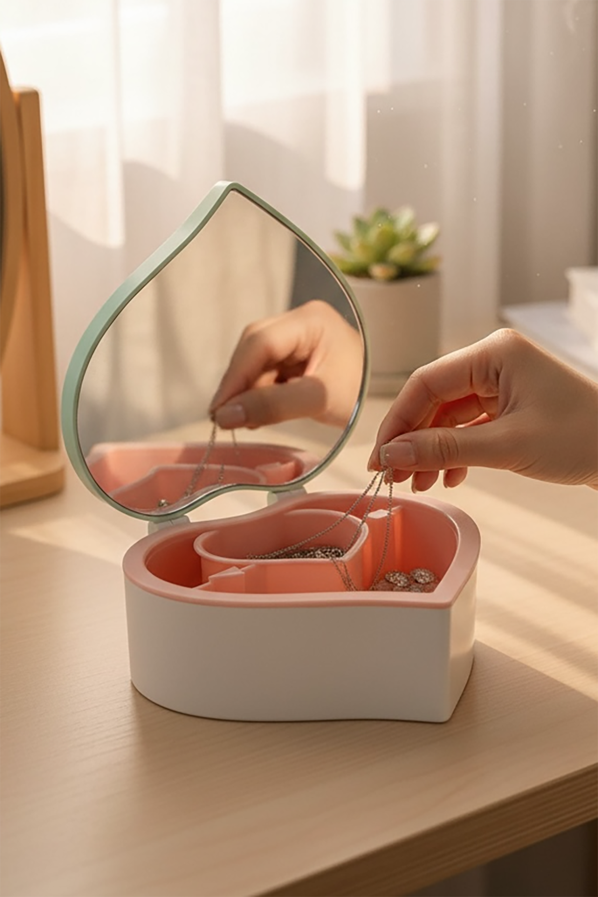 Beyaz Renk Kalp Figürlü Aynalı Takı Organizeri