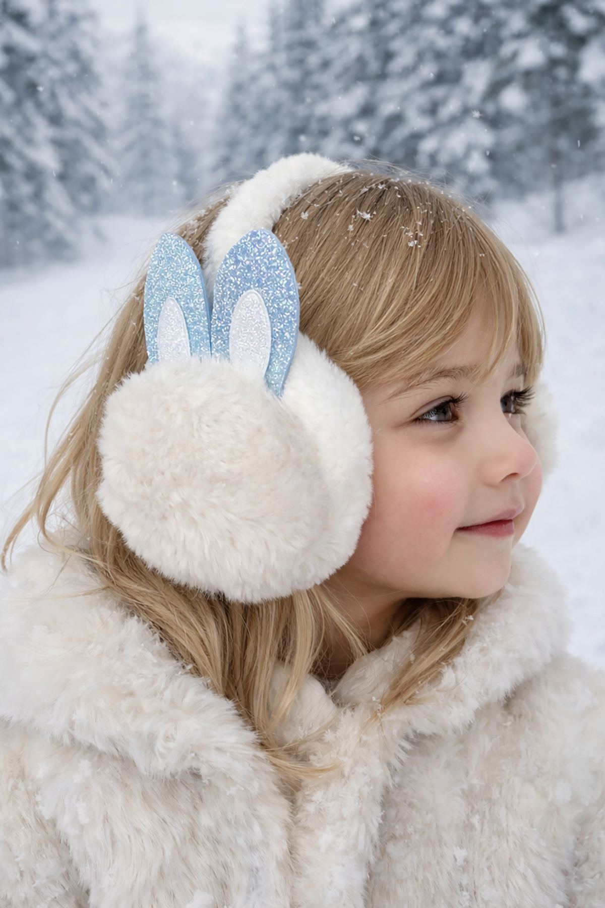 Beyaz Renk Kulak Figürlü Peluş Kulaklık