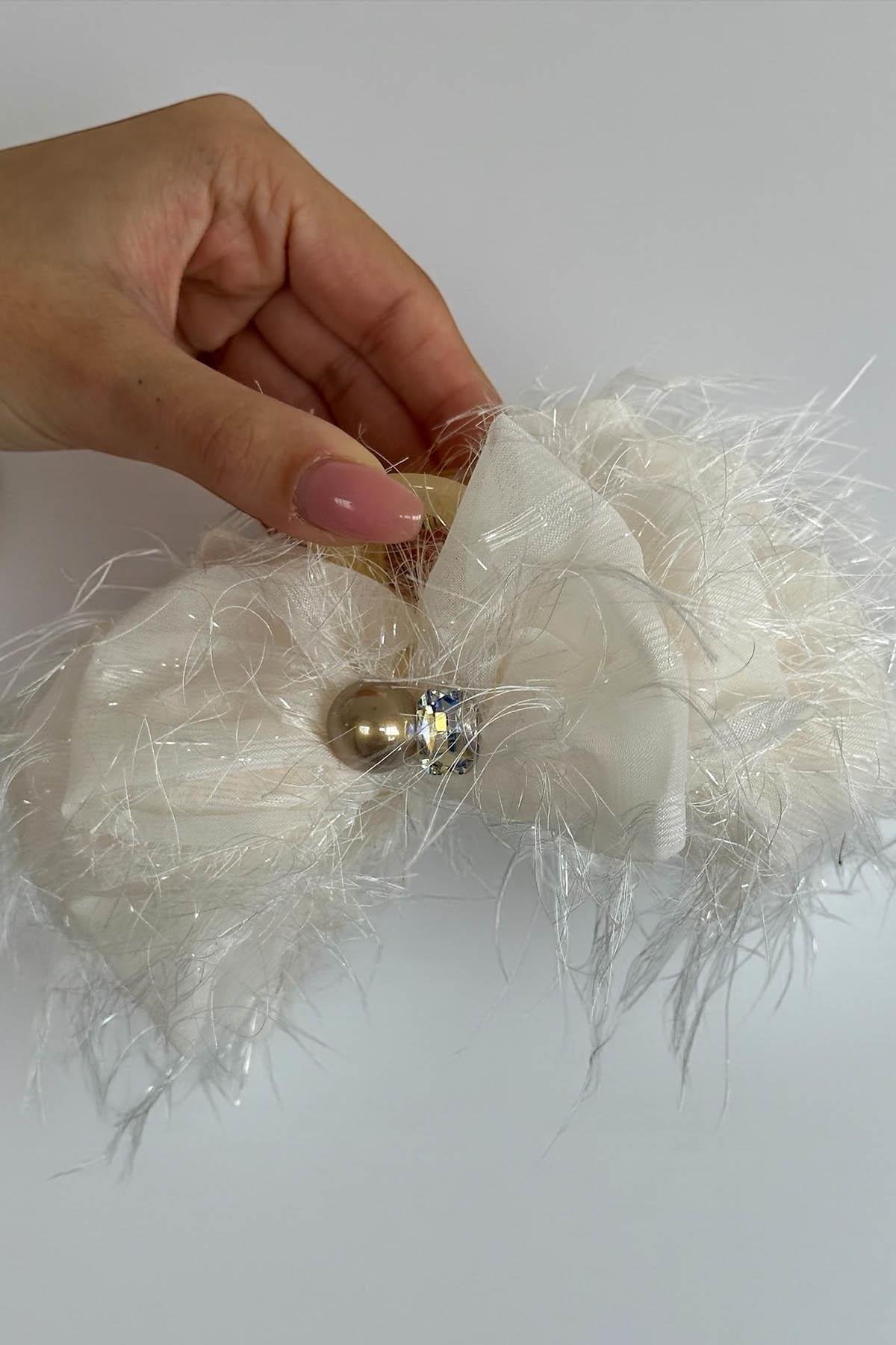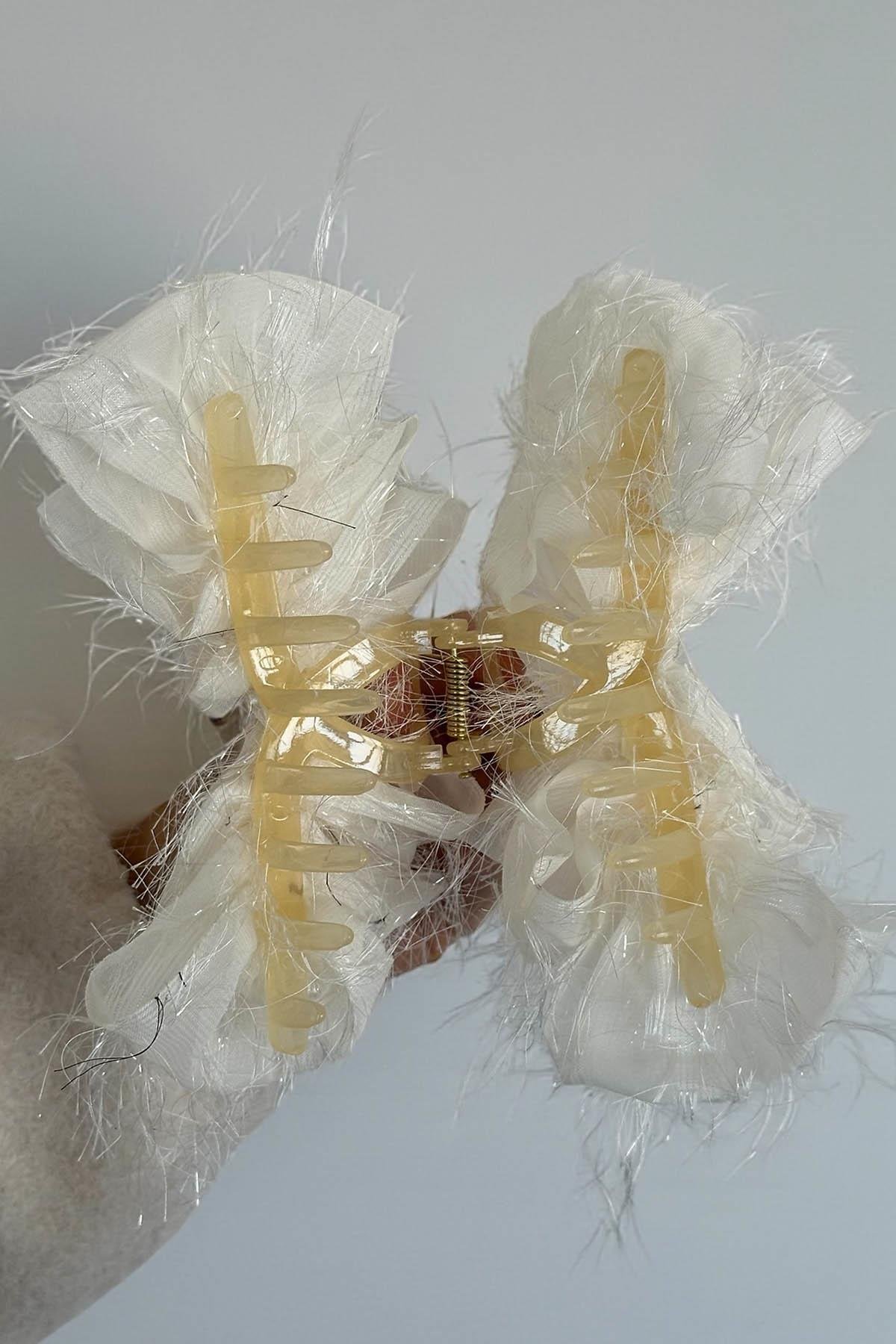 Beyaz Renk Kurdele Figürlü Taş Detaylı Mandal  Toka