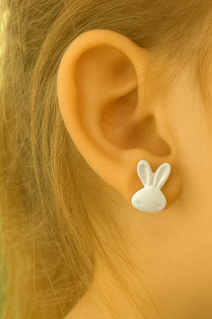 Beyaz Renk Tavşan Figürlü Çocuk Küpe (Çift)