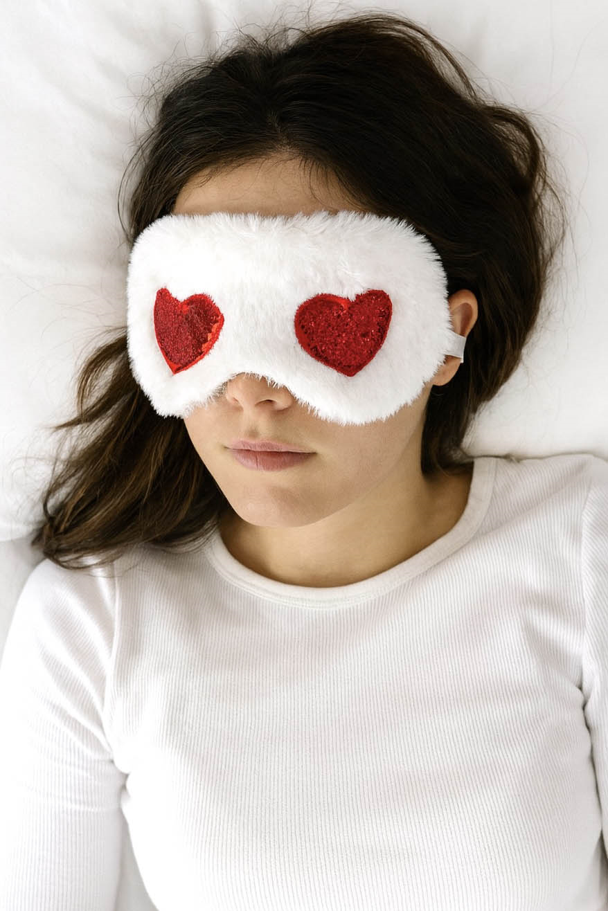 Beyaz Ve Kırmızı Renk Kalp Figürlü Peluş Uyku Bandı