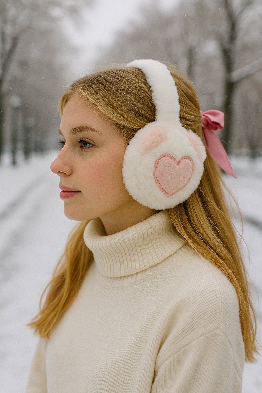 Beyaz Ve Pembe Renk Kalp Figürlü Peluş Kulaklık