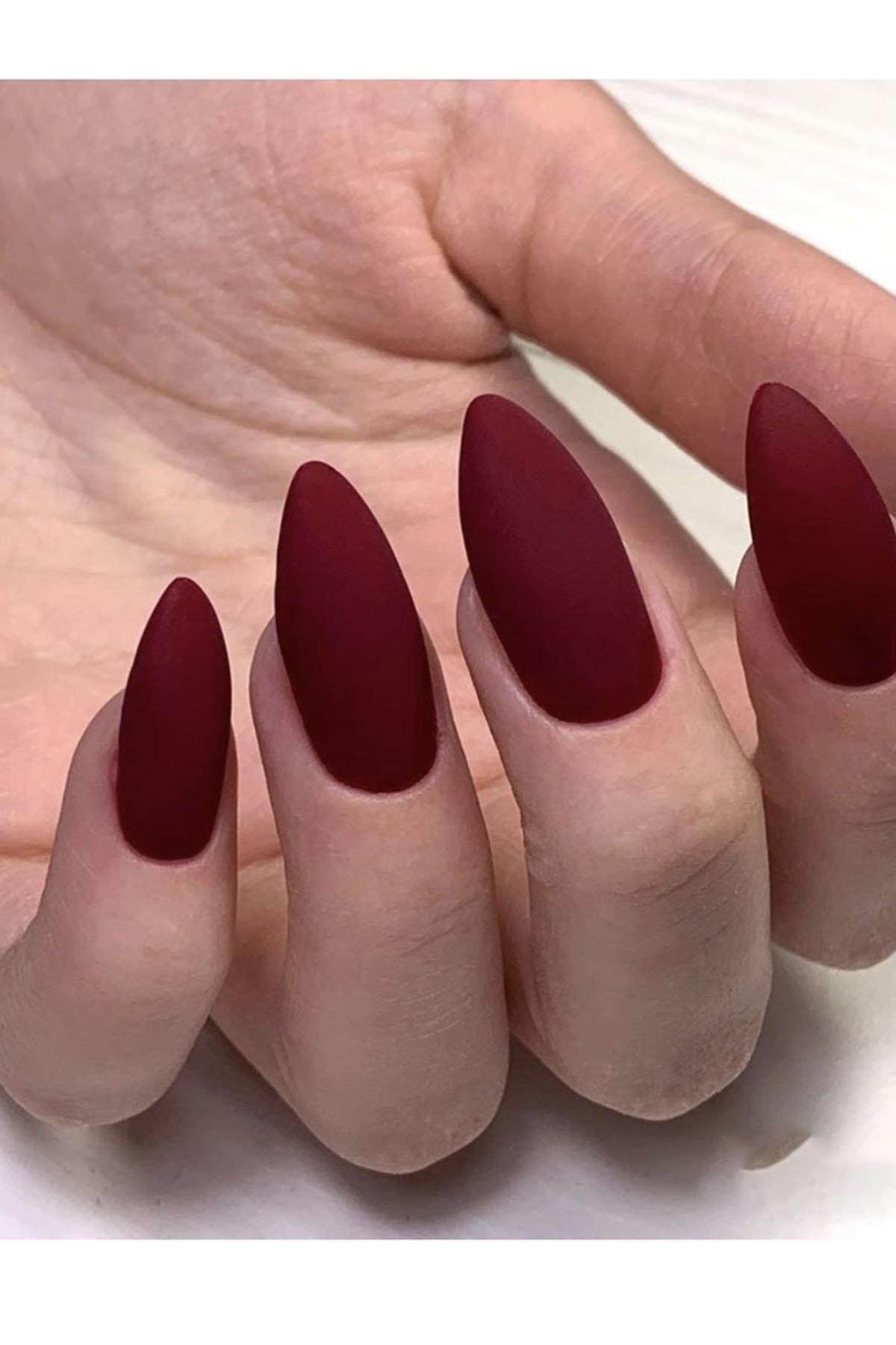 Bordo Renk 12'li Takma Takma Tırnak (Yapıştırıcılı)