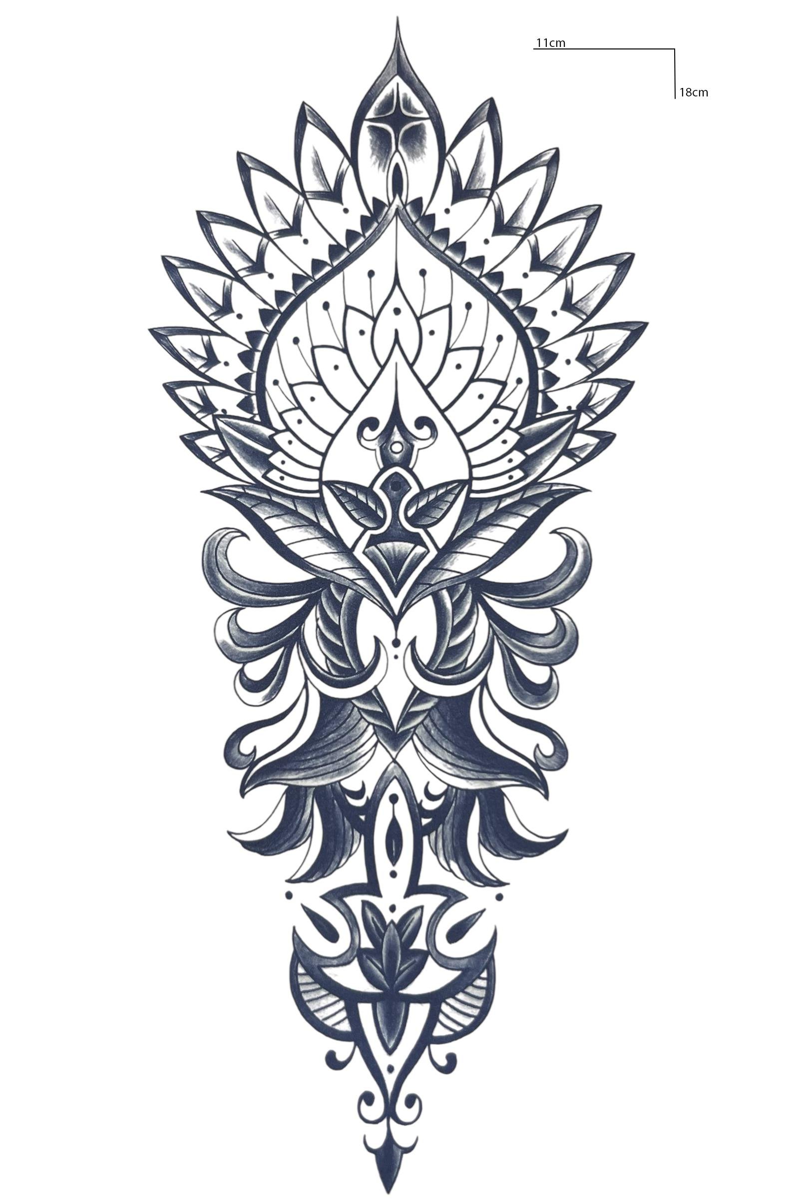 Çiçek Figürlü 12 Saat Sonra Kararan Geçici Orta Dövme Tattoo