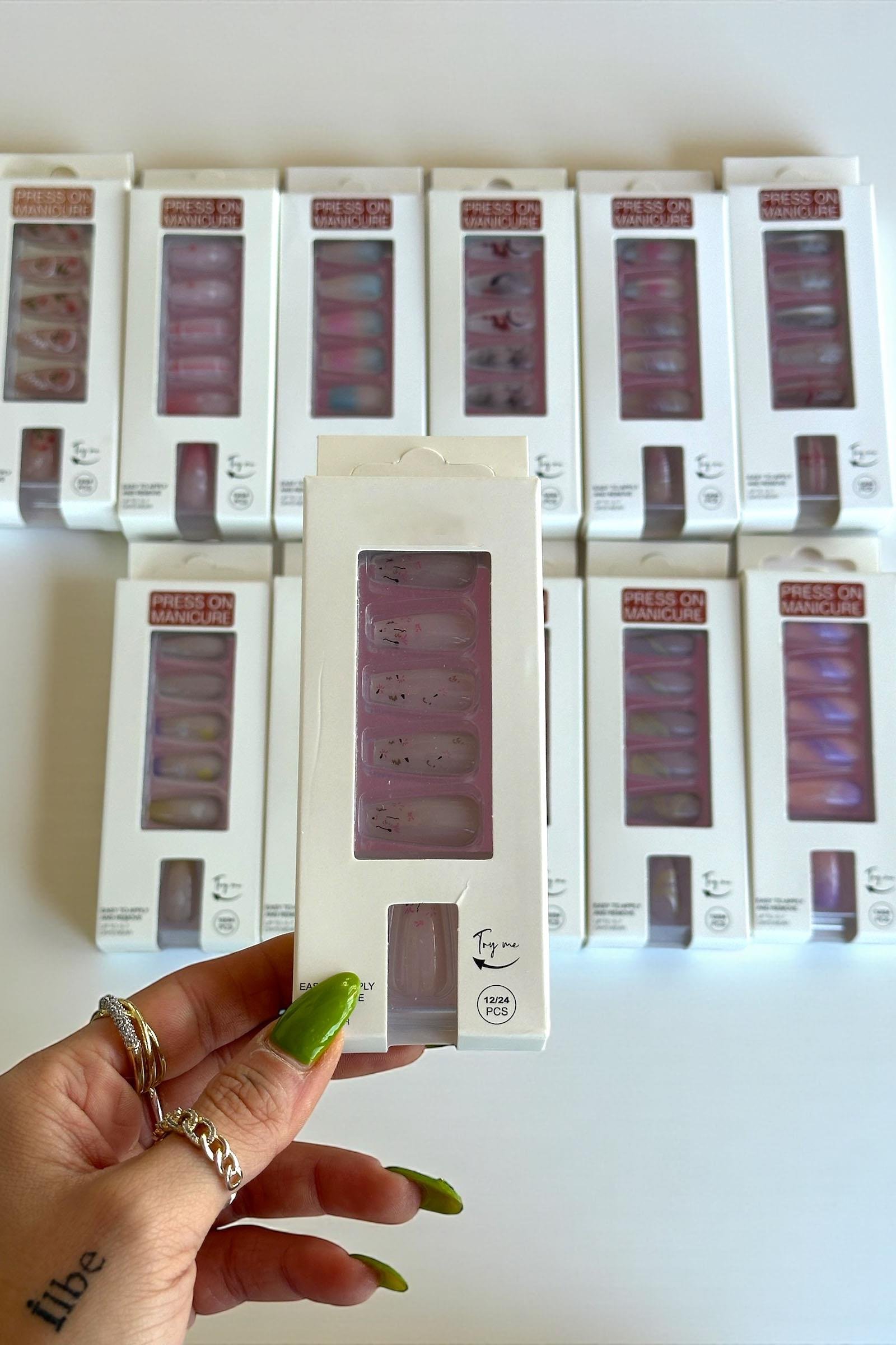 Zarif ve kendinden cilalı takma tırnaklar, etkileyici bir görünüm sağlar.