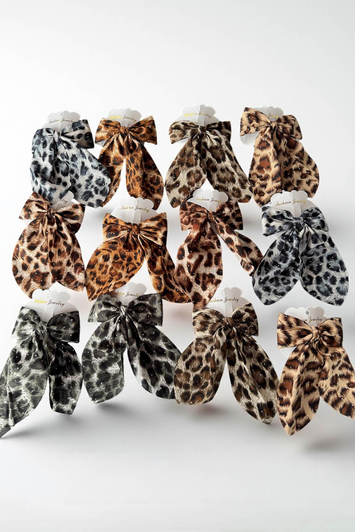 12'li Leopar Desenli Kurdele Figürlü Otomat Toka Set