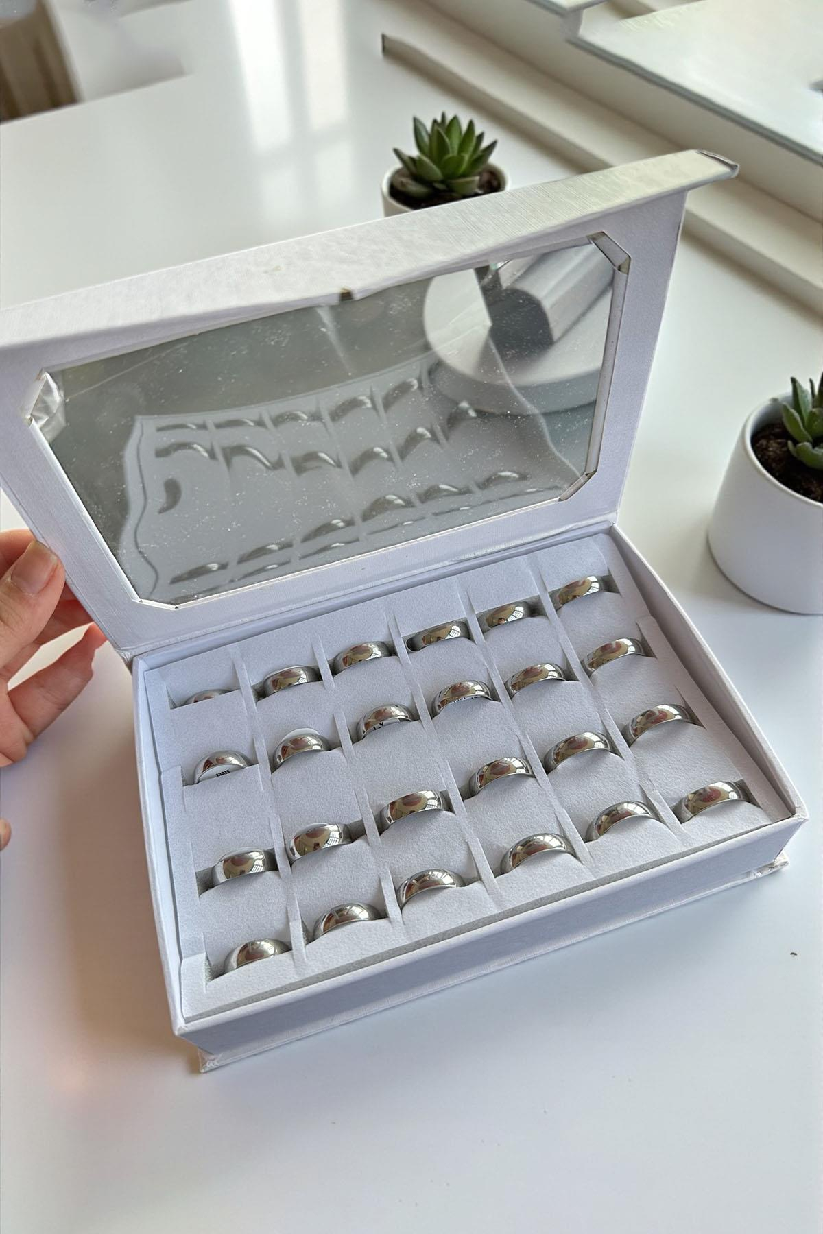 24'lü Gümüş Renk Numaralı Kalın Çelik Alyans Set