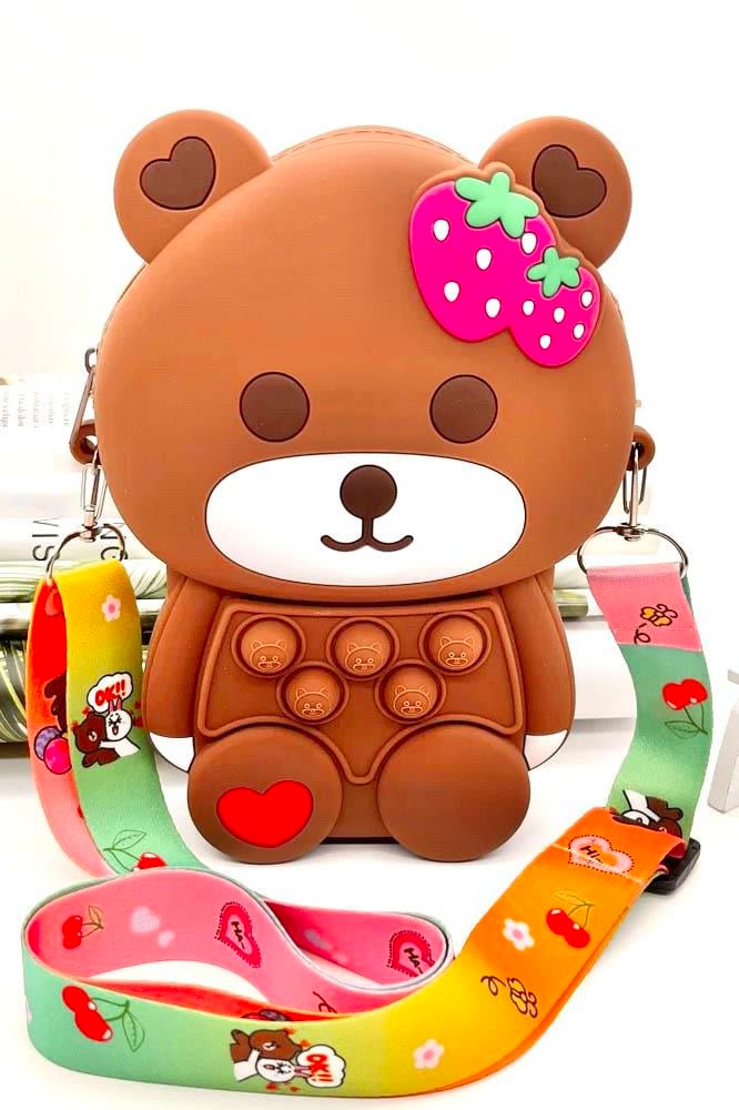 Açık Kahve Renk Ayıcık Figürlü Çocuk Pop-İt Çanta
